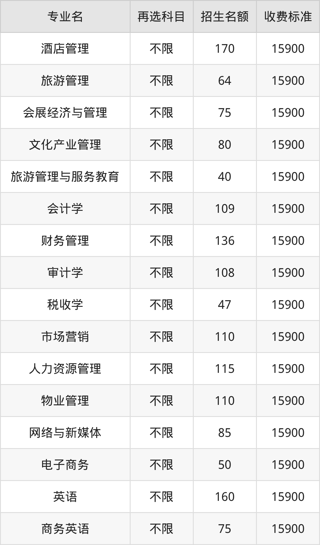 2.旅游管理:学费是15900元
