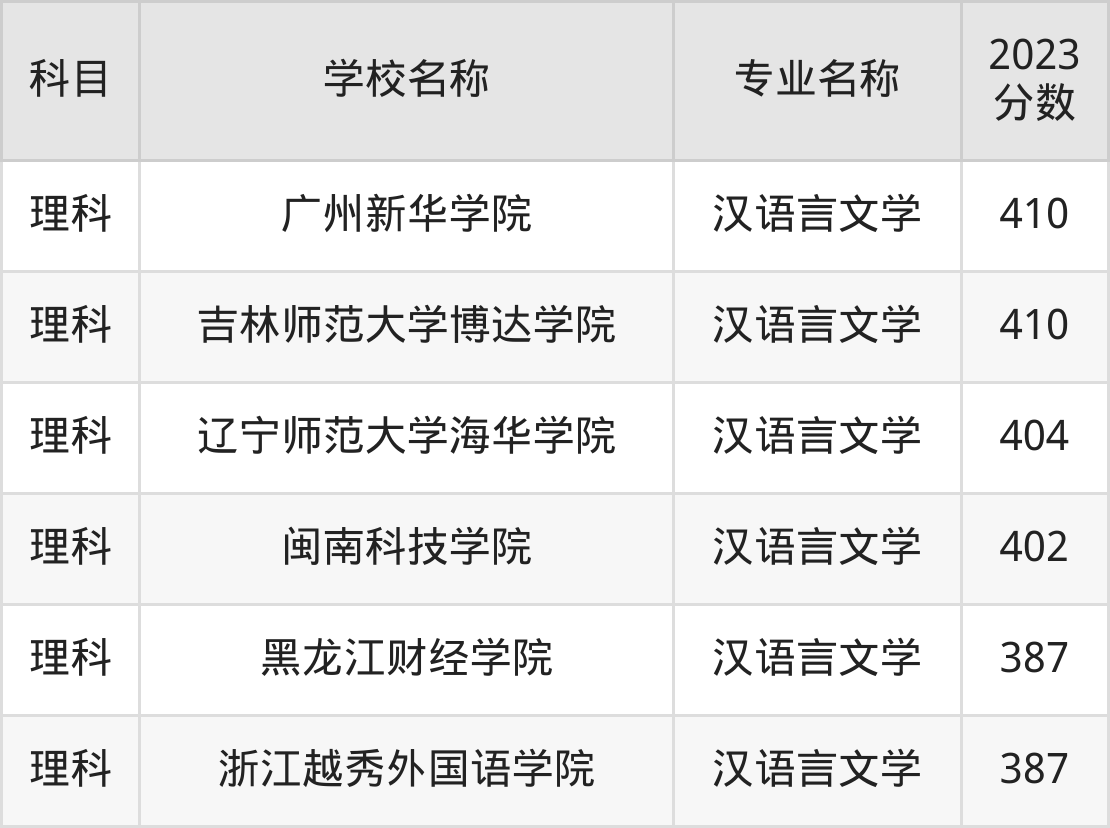 | 丽江文化旅游学院 | 汉语言文学(校 本部) | 480 |