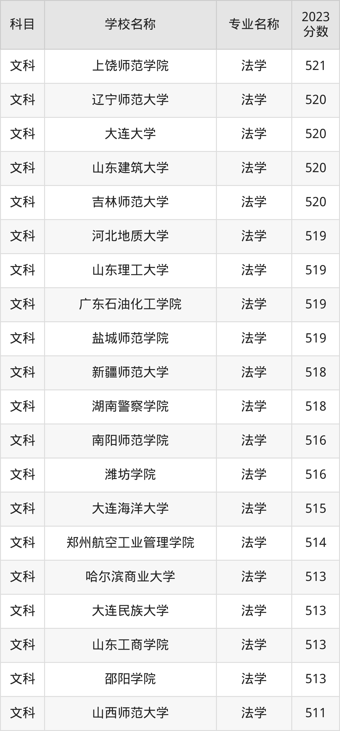 | 南宁师范大学 | 法学(在五合校 区办学) | 520 |
