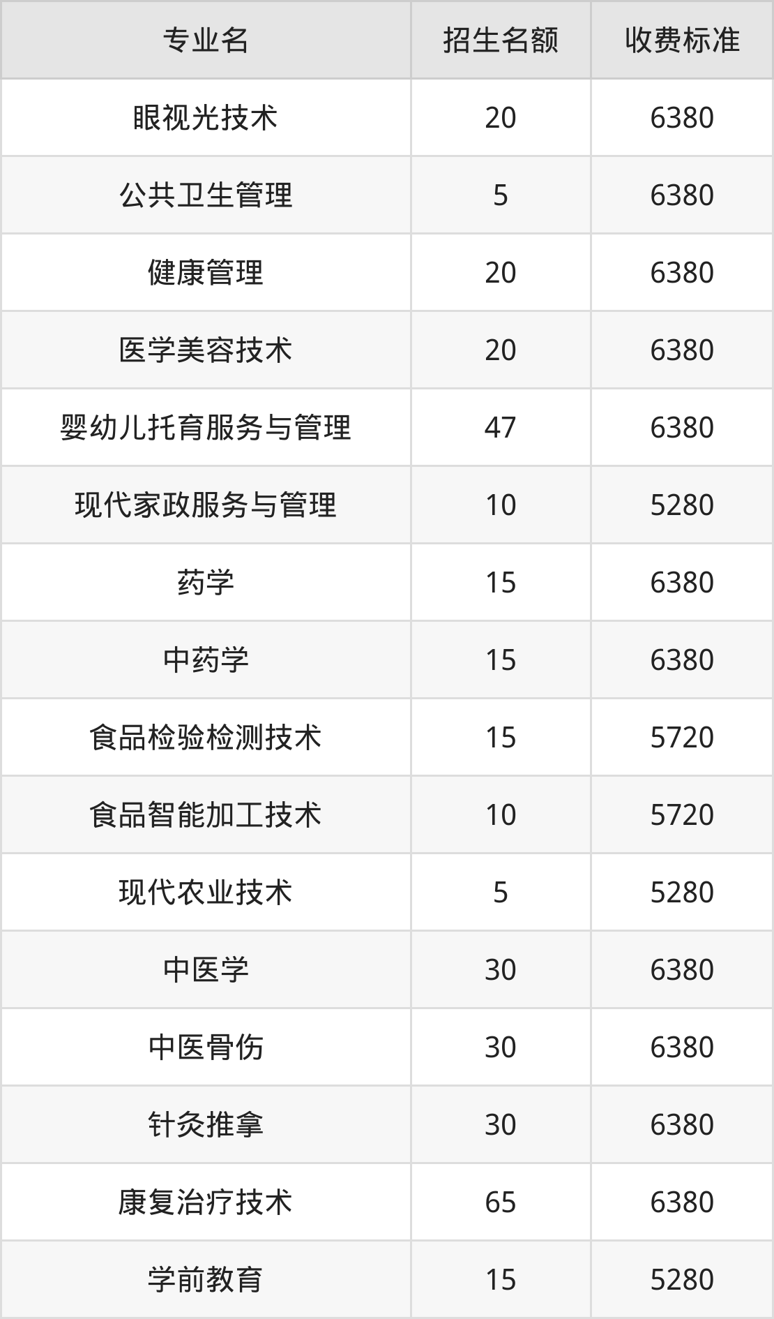 | 高职专科批 | 卫生检验与检疫技术 | 10 |