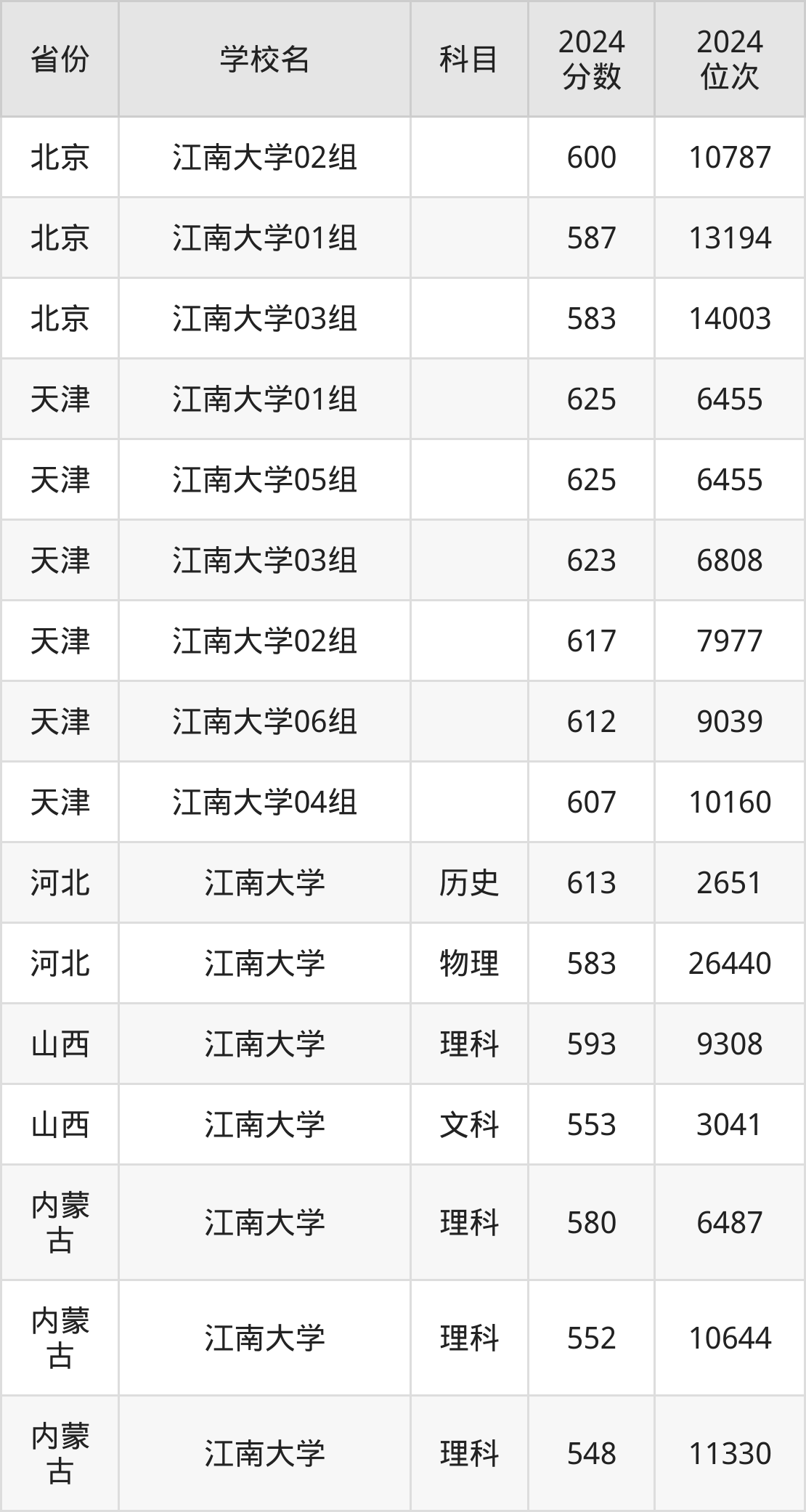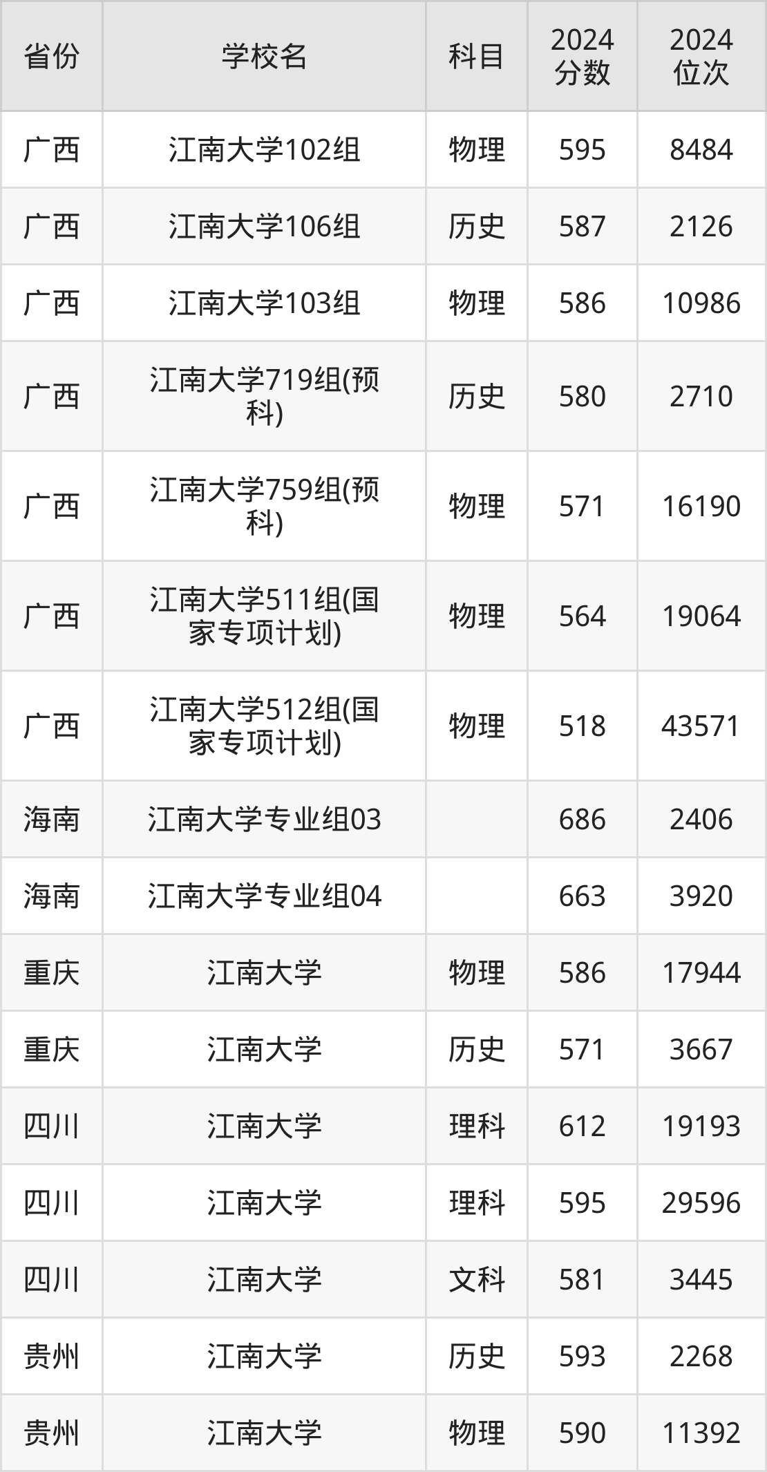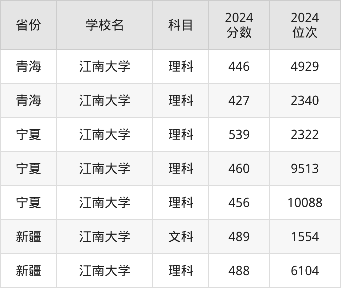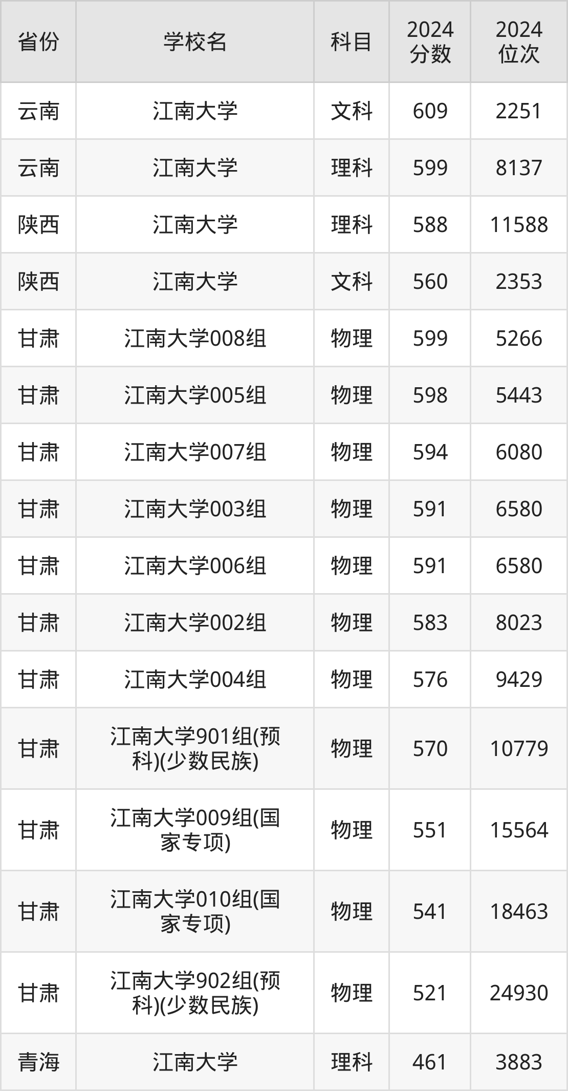 以2024年数据作为参考依据,整理江苏省内、省外考江南大学要多少分。