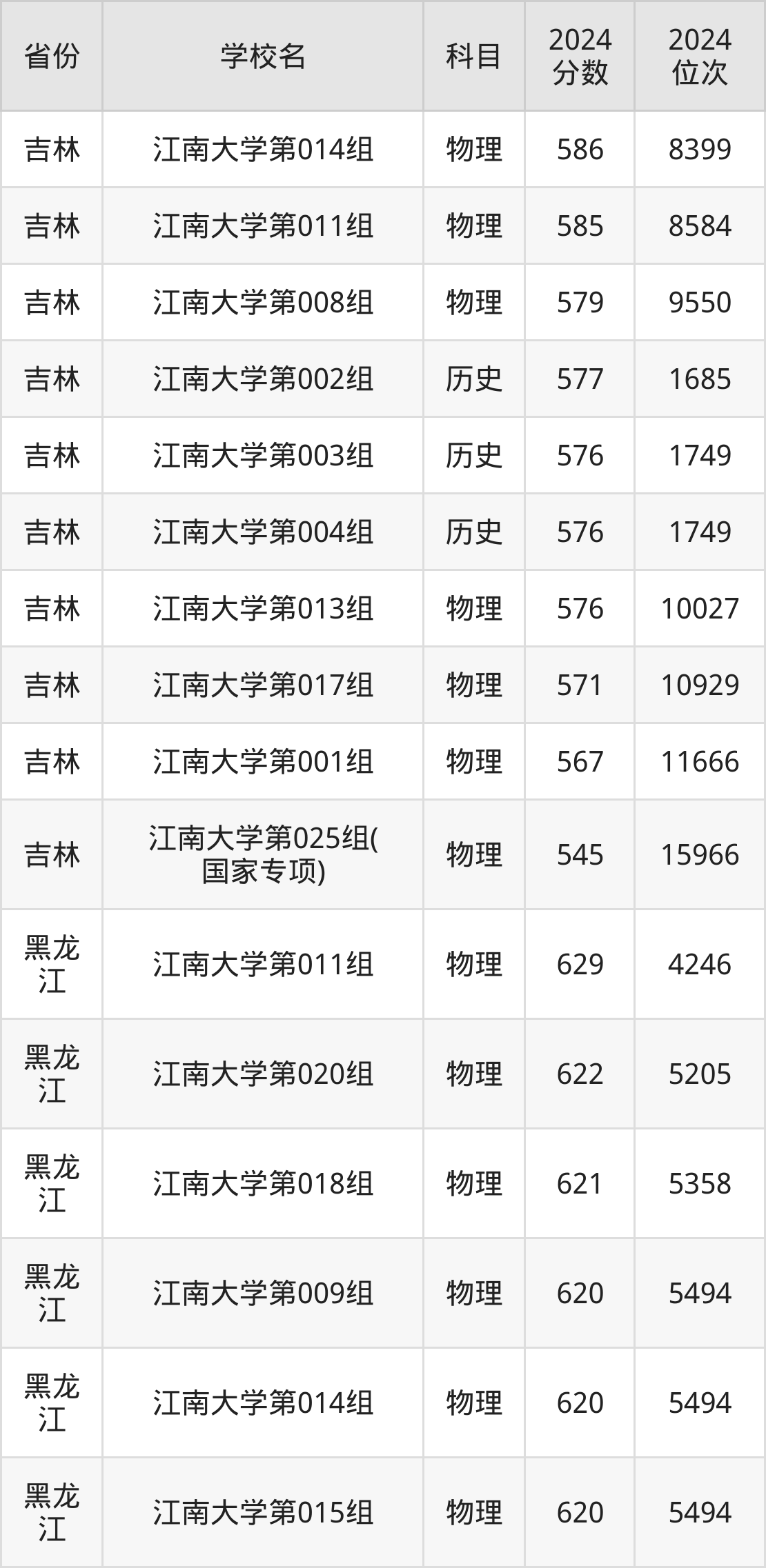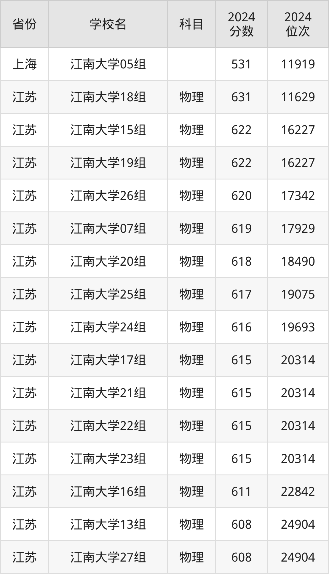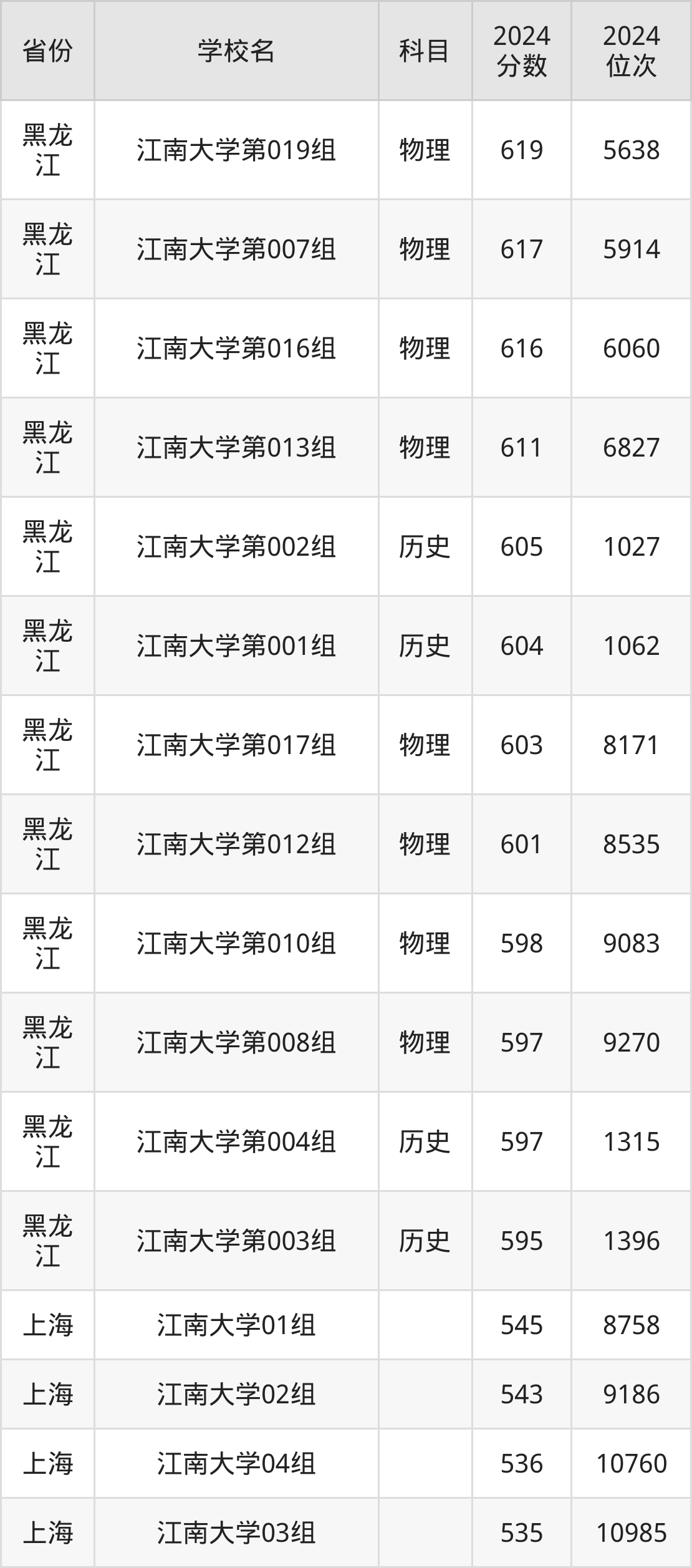 以2024年数据作为参考依据,整理江苏省内、省外考江南大学要多少分。