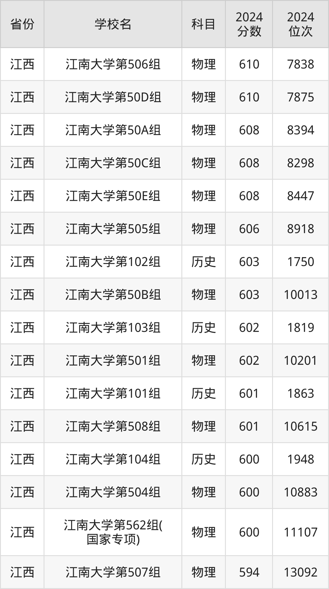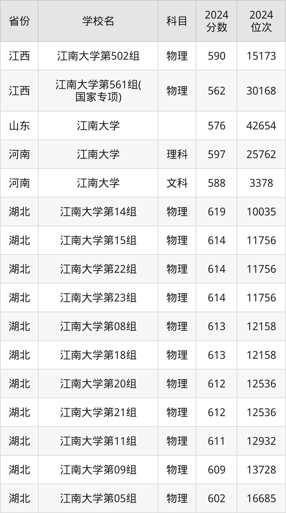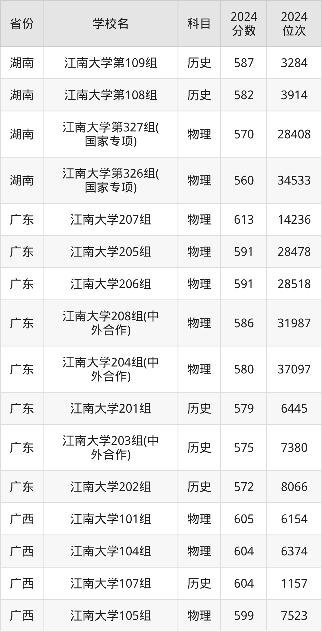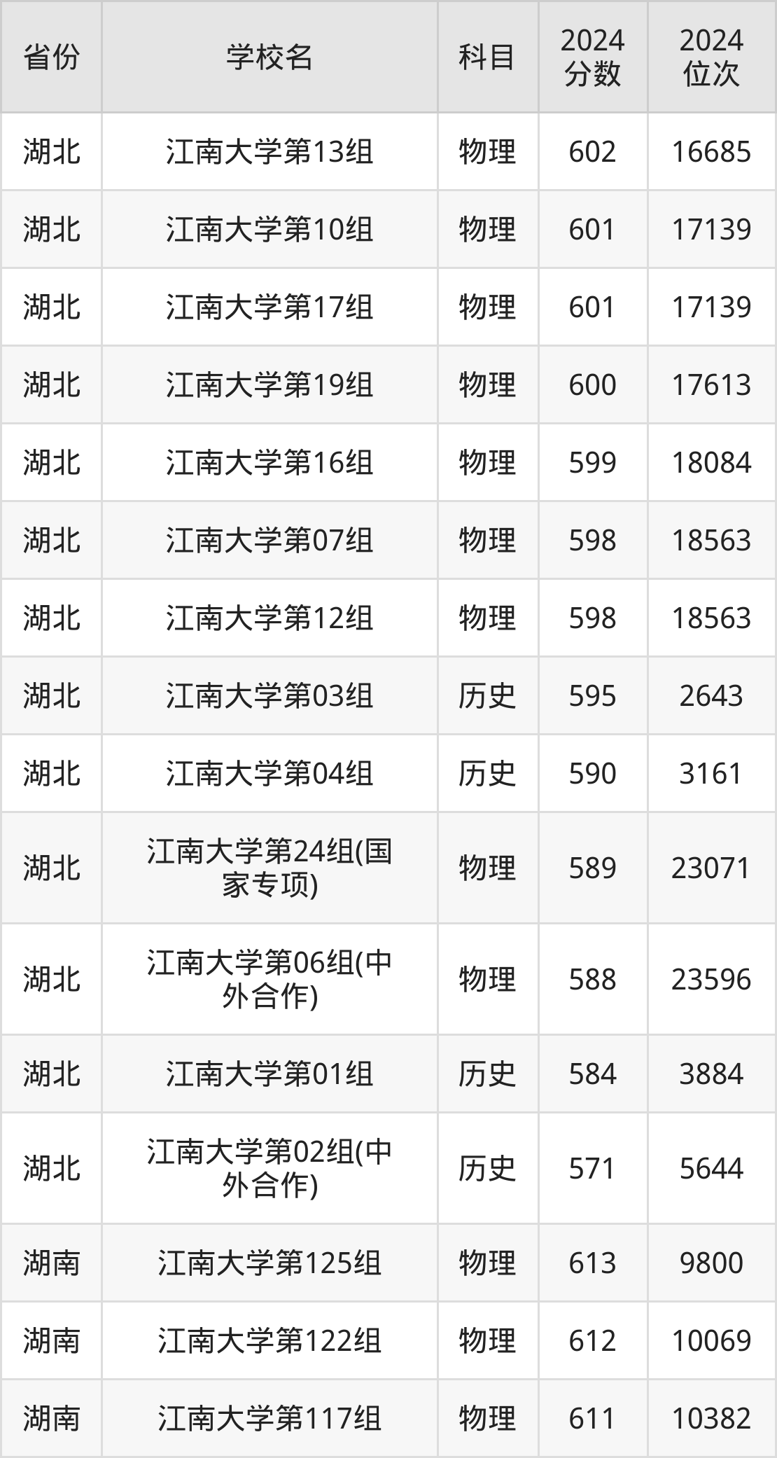 2024年江南大学在江苏省内录取最低分数线是583分,录取最低的是历史类05组(中外合作);录取分数线最高是631分,对应的是物理类18组。