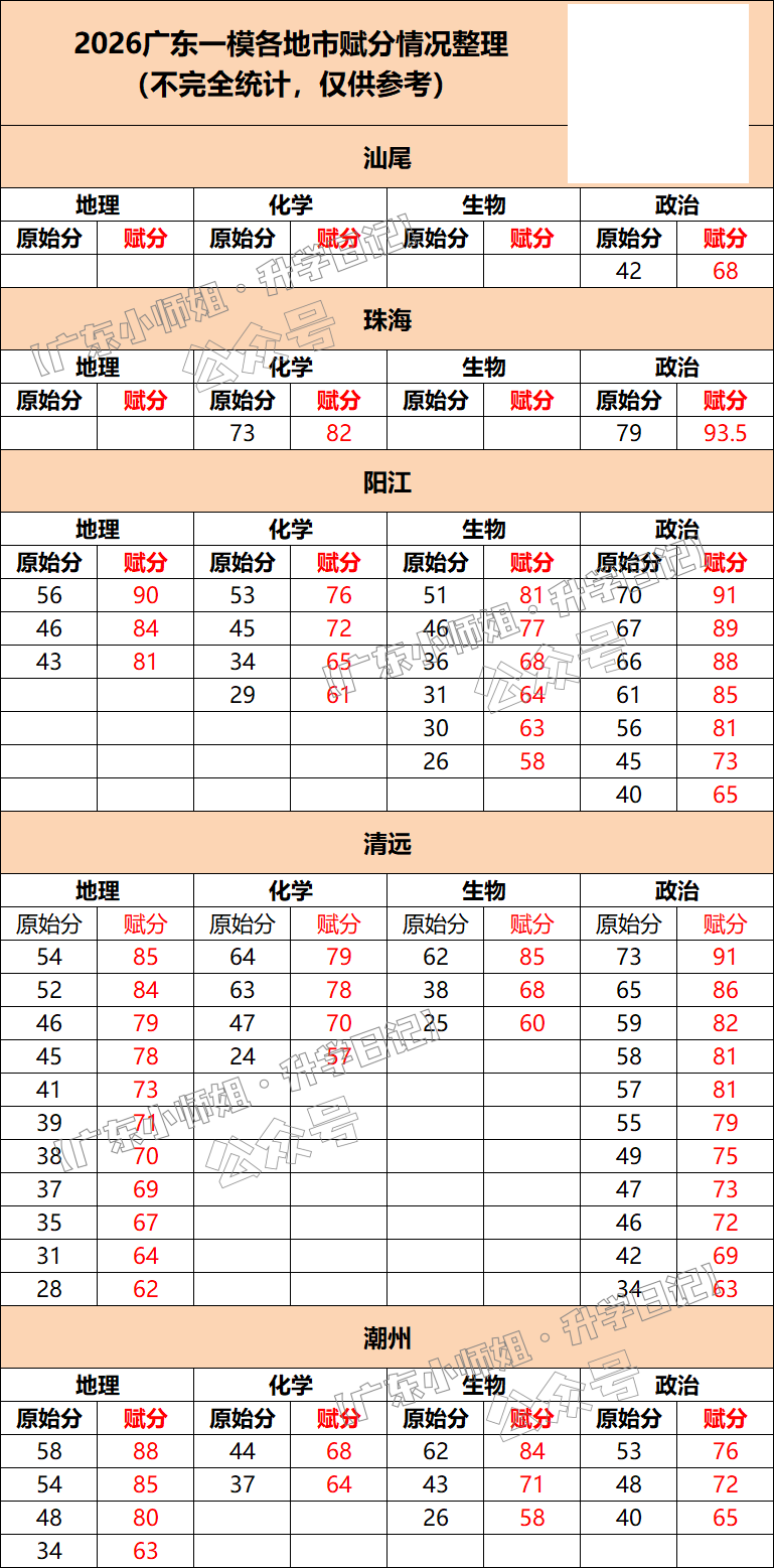 3.2026广东一模潮州赋分表