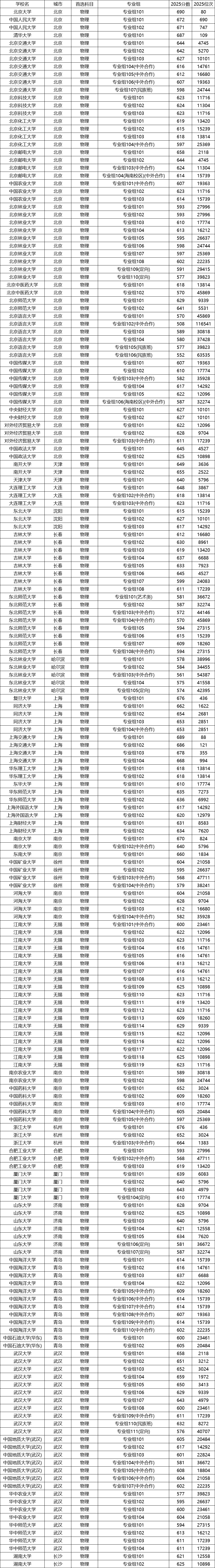 分数在600分至650分之间的考生,可报考多数211、985高校及部分热门专业。例如:
