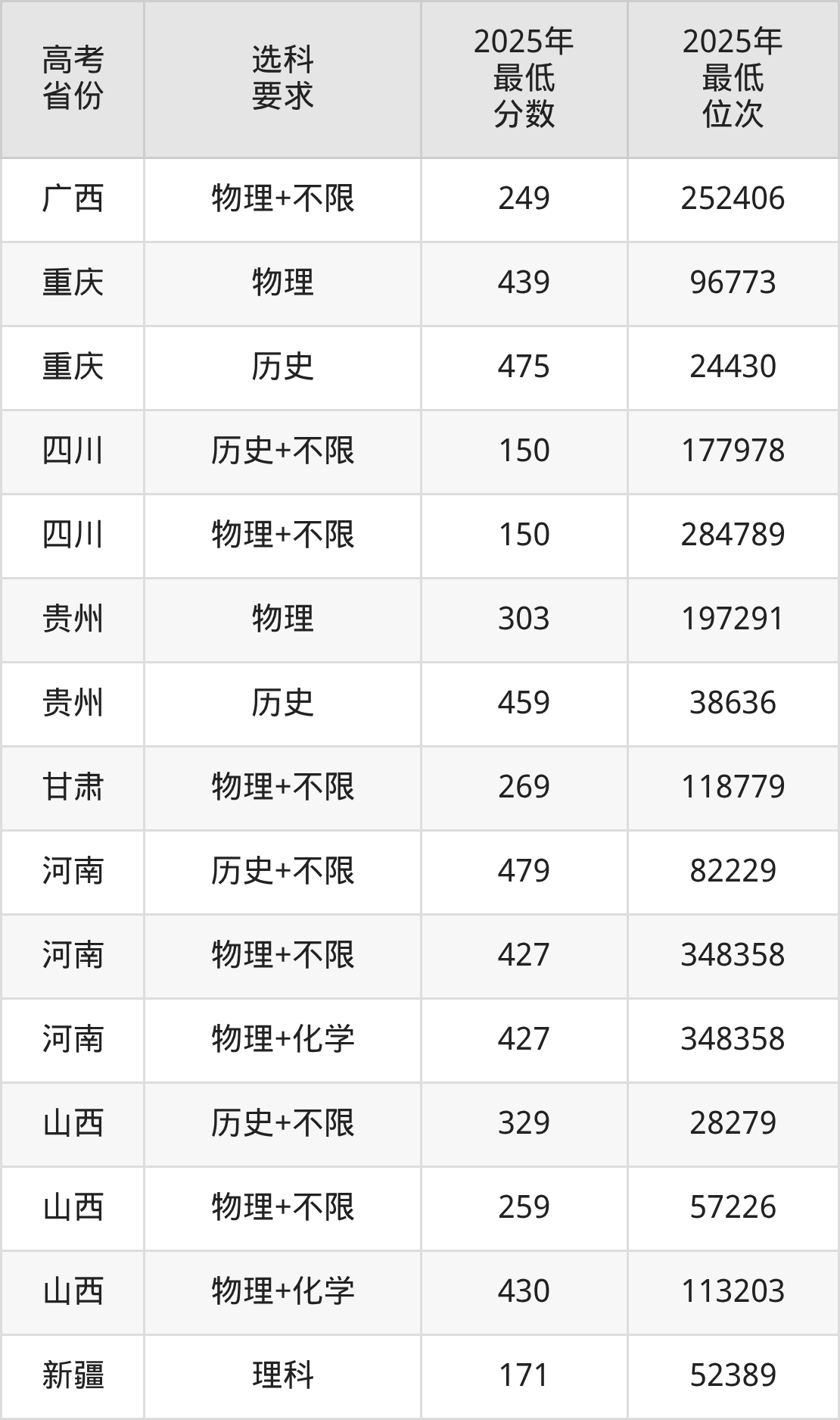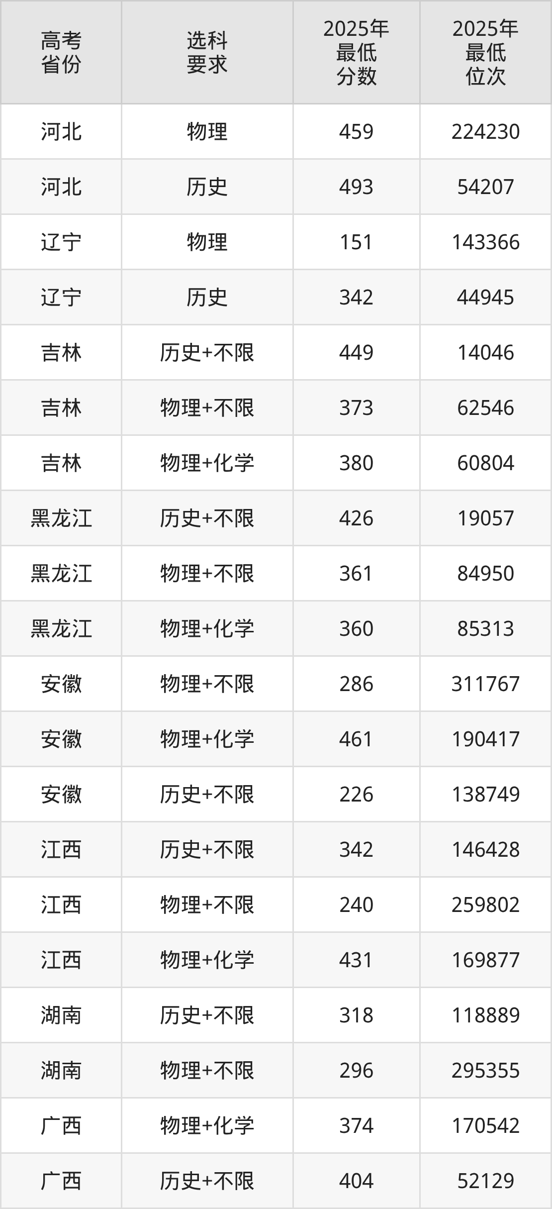 在2025年辽宁高考物理类招生时,公办本科收分最低的是鞍山师范学院,最低分是154分、位次是143361位。再看辽宁理工学院,2025年在辽宁物理类的最低录取分数线是151分,最低位次是143366位。