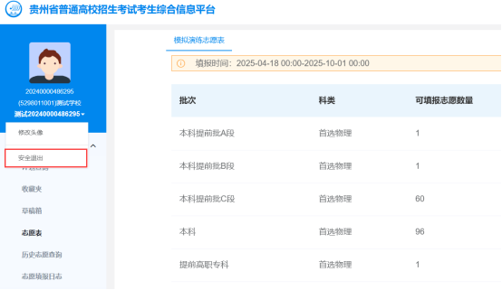 填报完成后,考生应点击“安全退出”或退出登录,并关闭页面,以确保账号信息安全。