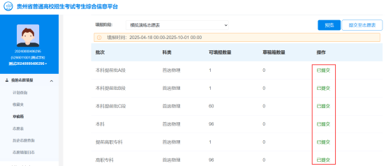 志愿提交后,考生可进入“志愿表”页面进行预览,确认所有院校和专业信息是否提交成功。如需修改志愿,可以将志愿退回到草稿箱重新编辑。但需要注意,在志愿填报期间每名考生最多只有3次提交机会。
