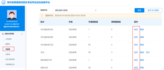 草稿保存后,考生可以在“草稿箱”中点击“预览”,对志愿信息进行逐条核对。重点检查院校名称、专业代码、志愿顺序等是否填写正确。如果发现问题,可以在正式提交前继续修改。