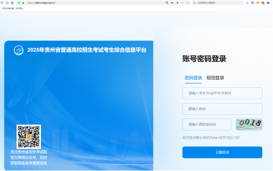 考生首先登录“贵州省普通高校招生考试考生综合信息平台”(http://gkks.eaagz.org.cn/),输入身份证号和密码进入系统。若使用手机操作,可下载“贵州招考”APP,通过身份证号和密码登录系统。进入系统后,在首页点击“我的志愿填报”即可进入填报界面。