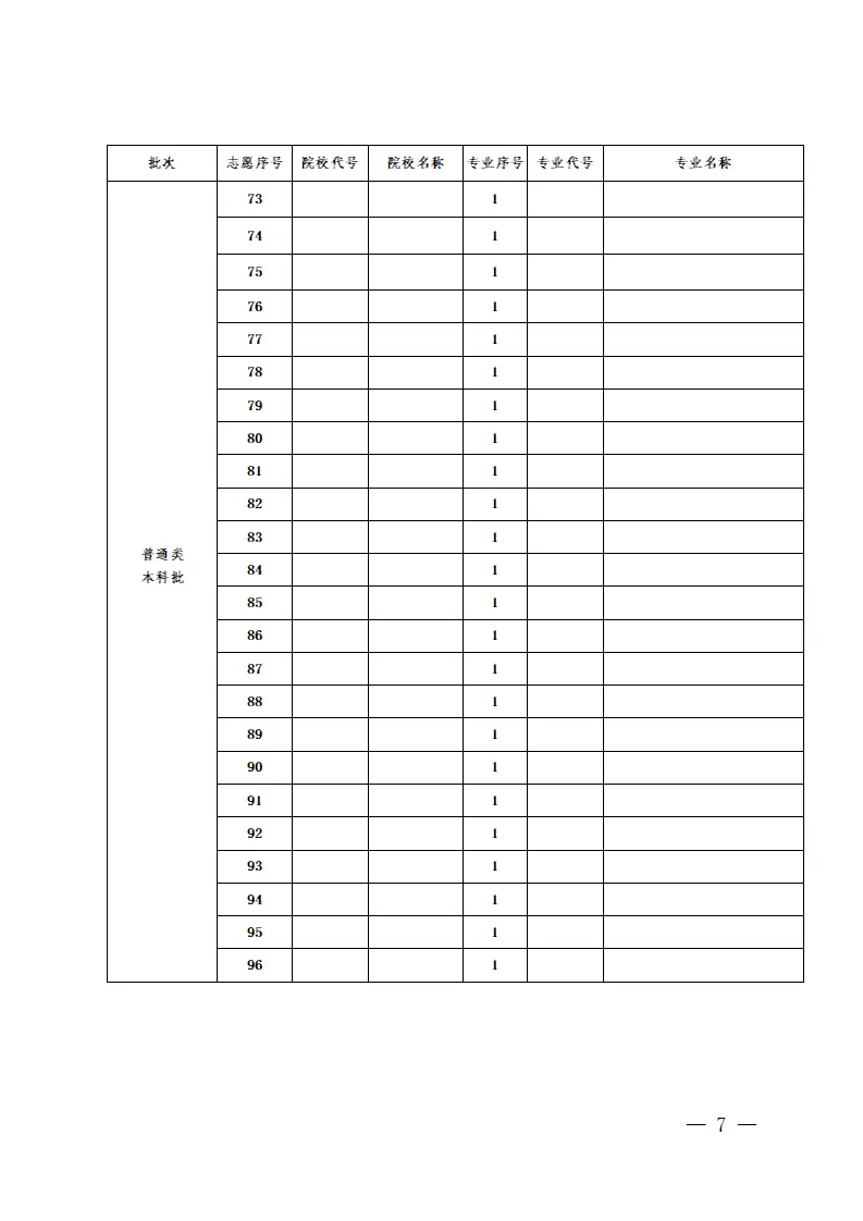实行平行志愿投档,考生可填报96个专业(类)平行志愿。
