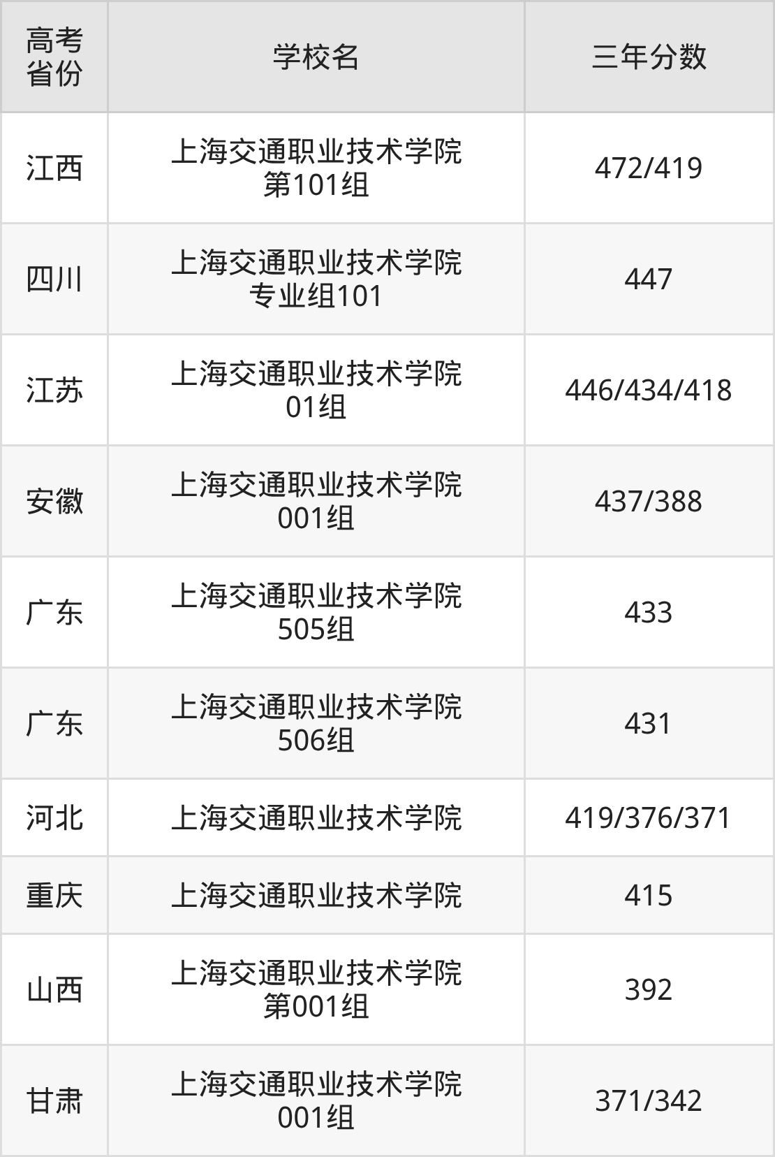 上海交通职业技术学院在全国多省市招生,不同省份录取分数线差异较大,下方表格整合2023-2025年物理类、历史类核心录取数据(分数格式:2025/2024/2023),外地考生可按自身高考省份查找,结合本地位次精准定位。