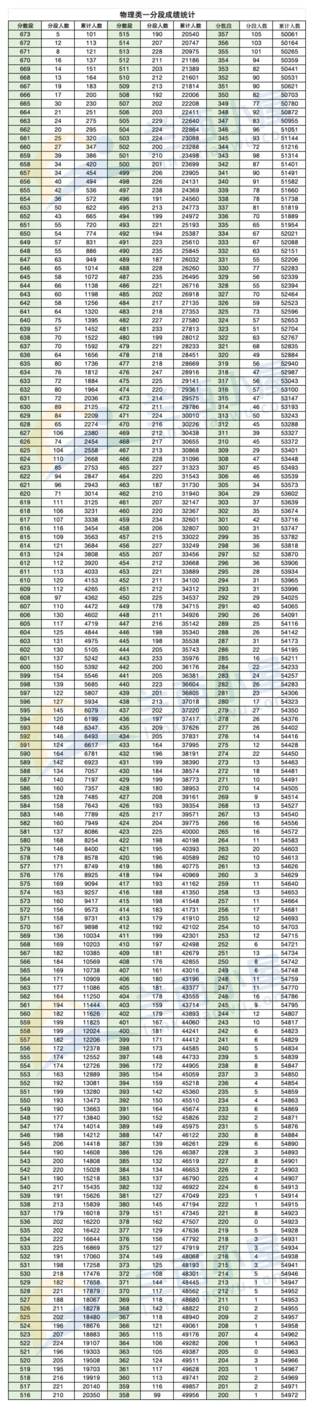 1.物理类一分一段表