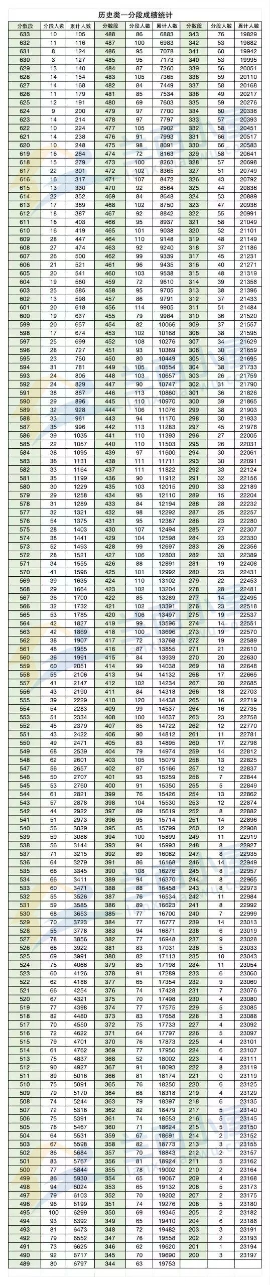 2.历史类一分一段表