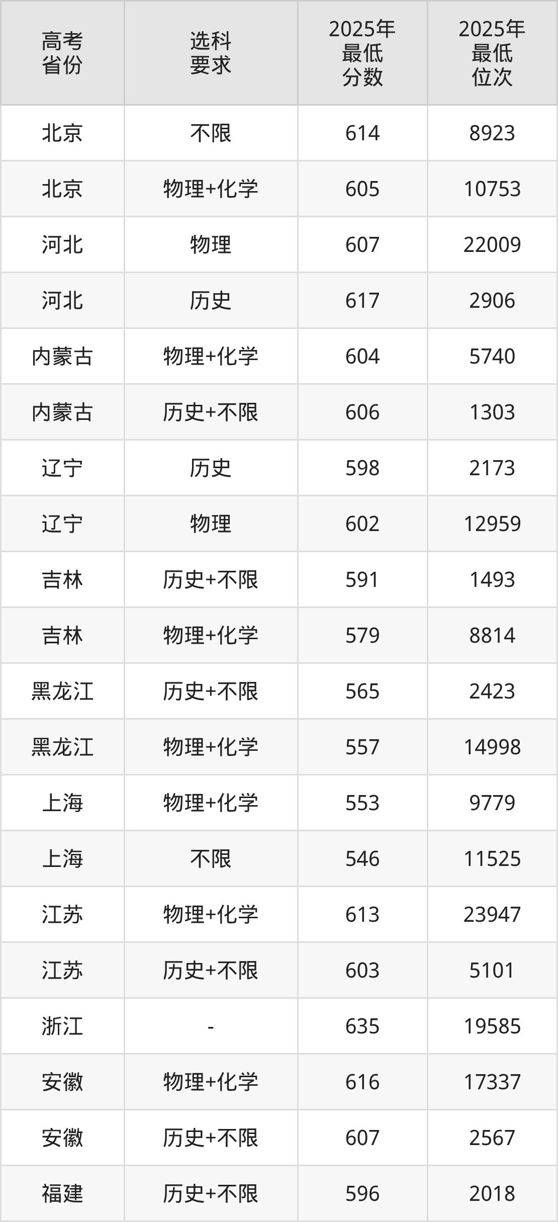 在2025年上海高考招生时,985收分最低的是西北农林科技大学(06)(中外合作办学),最低分是537分、位次是13876位。再看东华大学,2025年在上海的最低录取分数线是546分,最低位次是11525位。