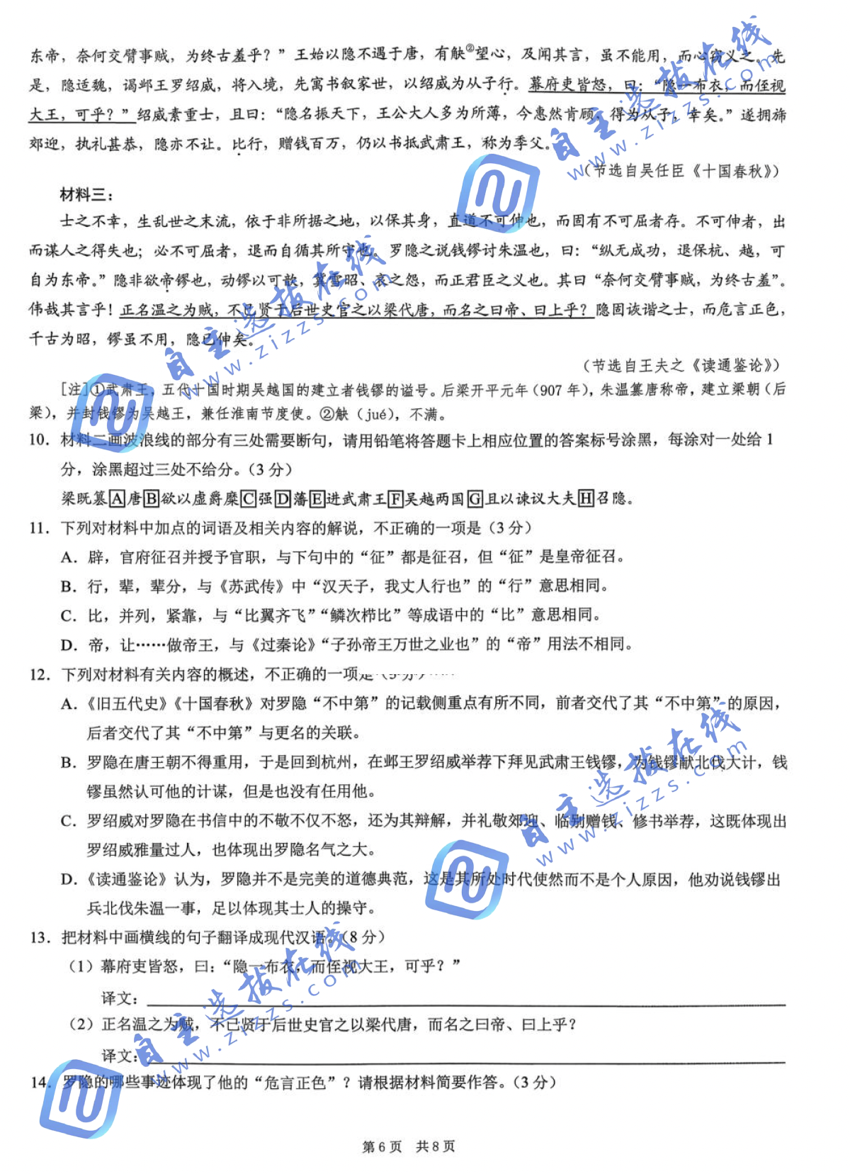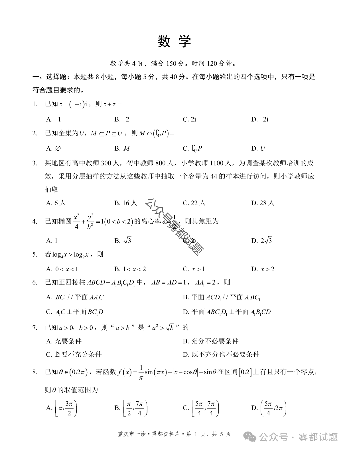 二、2026重庆一诊各科答案及试卷真题(康德卷)