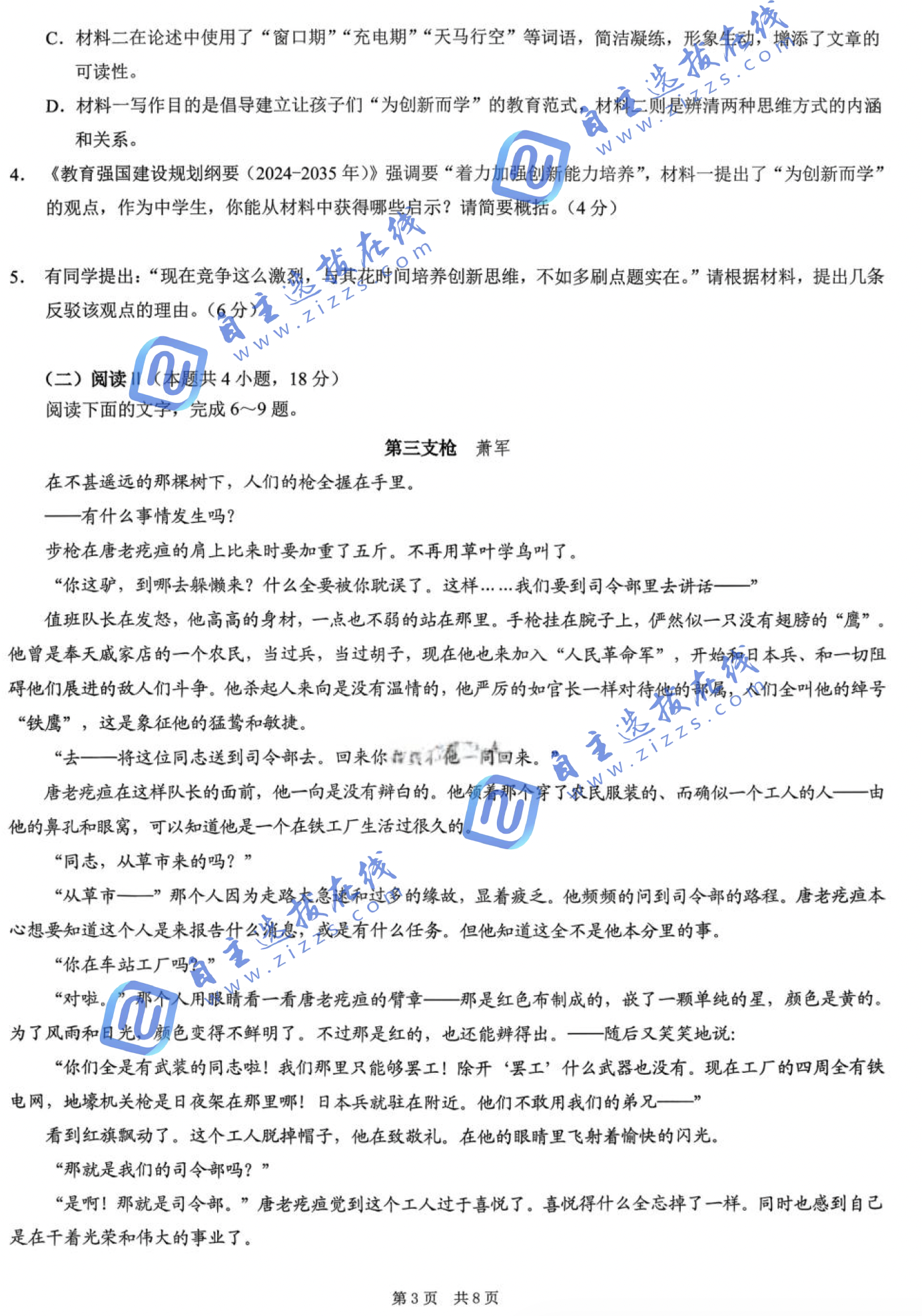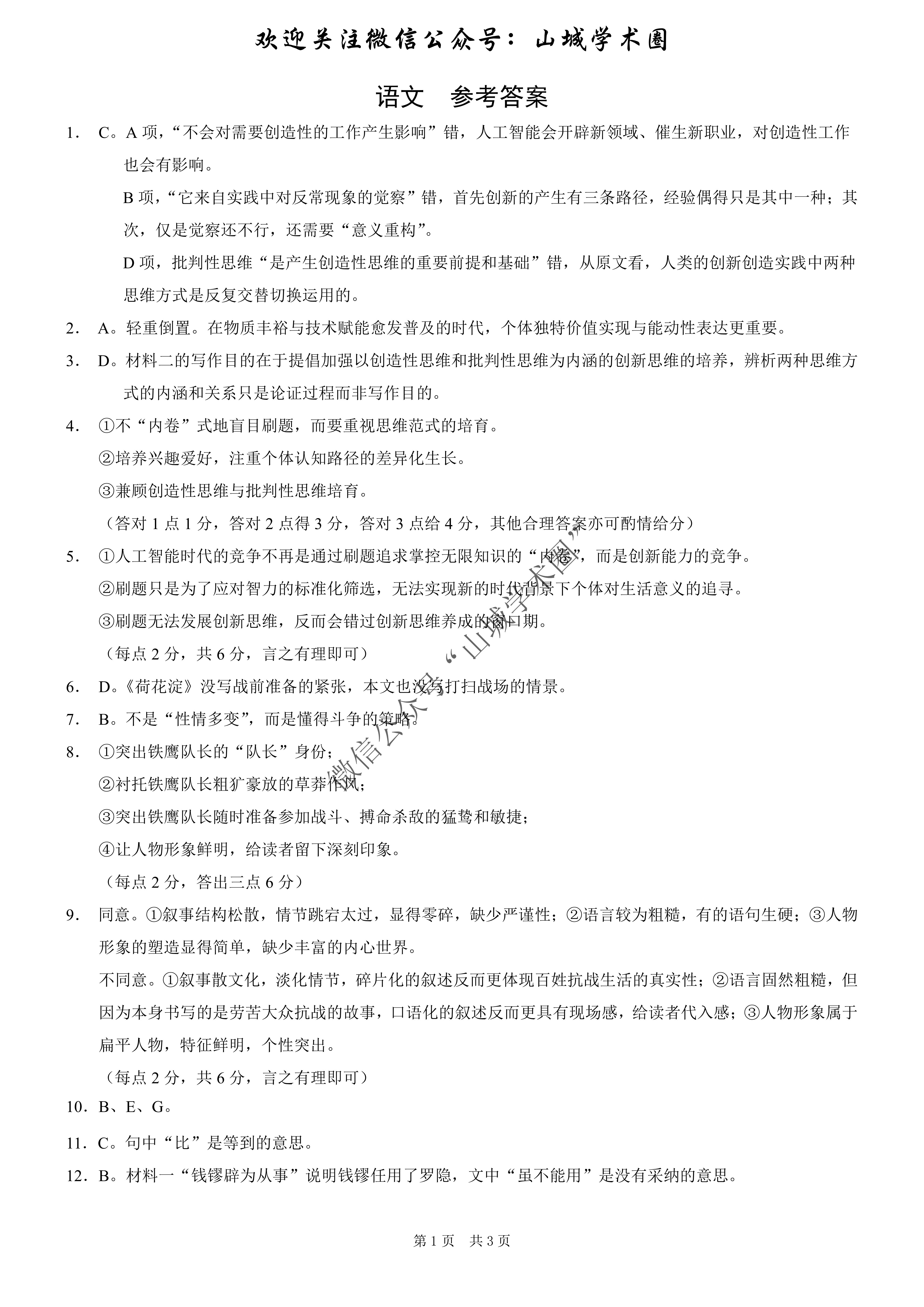 1.2026重庆一诊语文答案(康德卷)