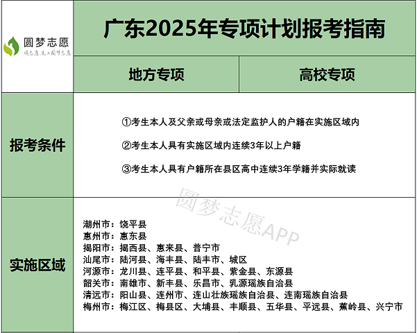 二、2026年广东专项计划定向地区