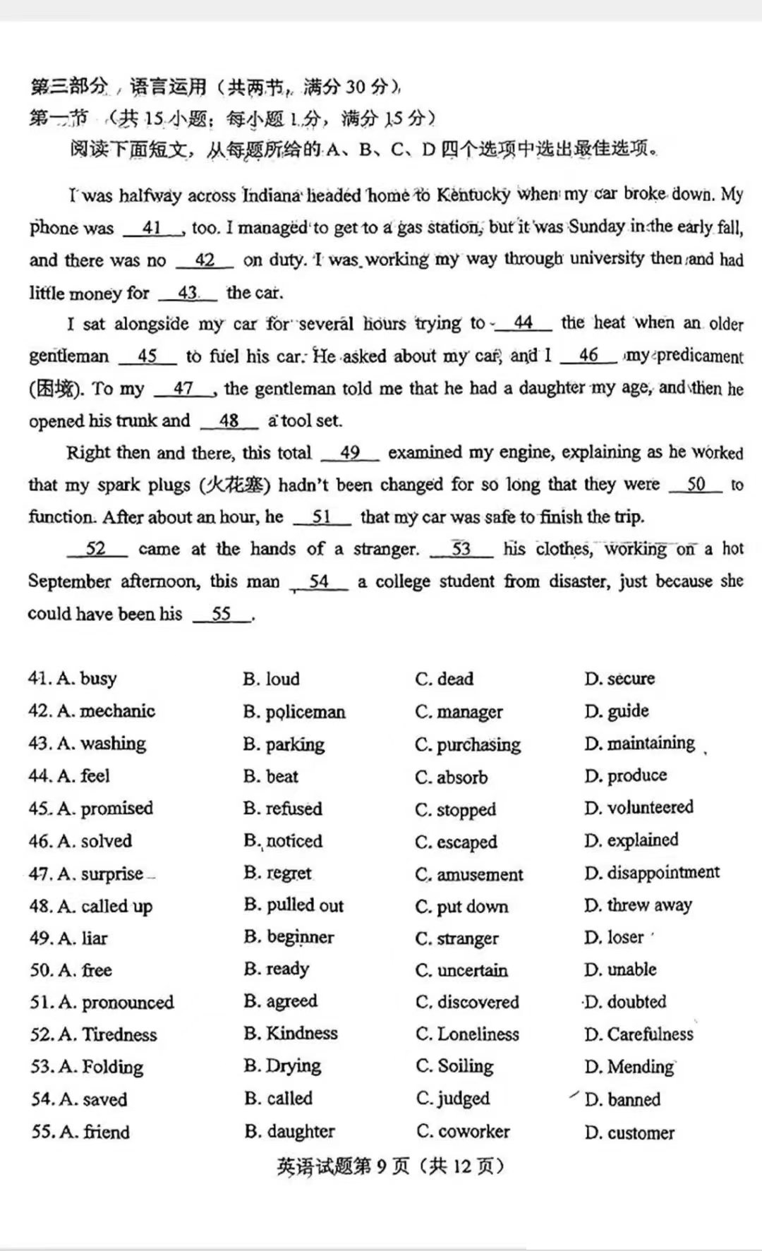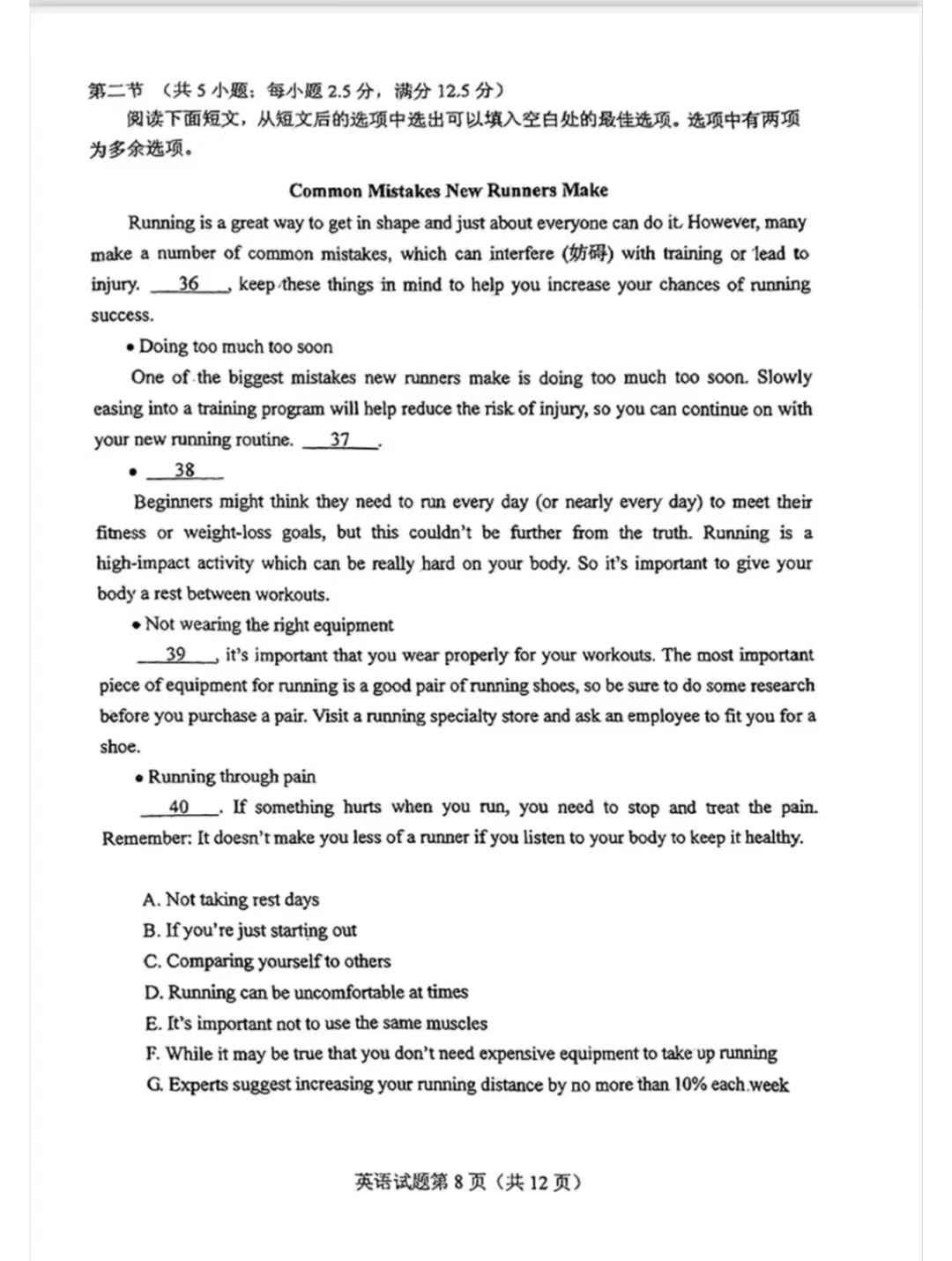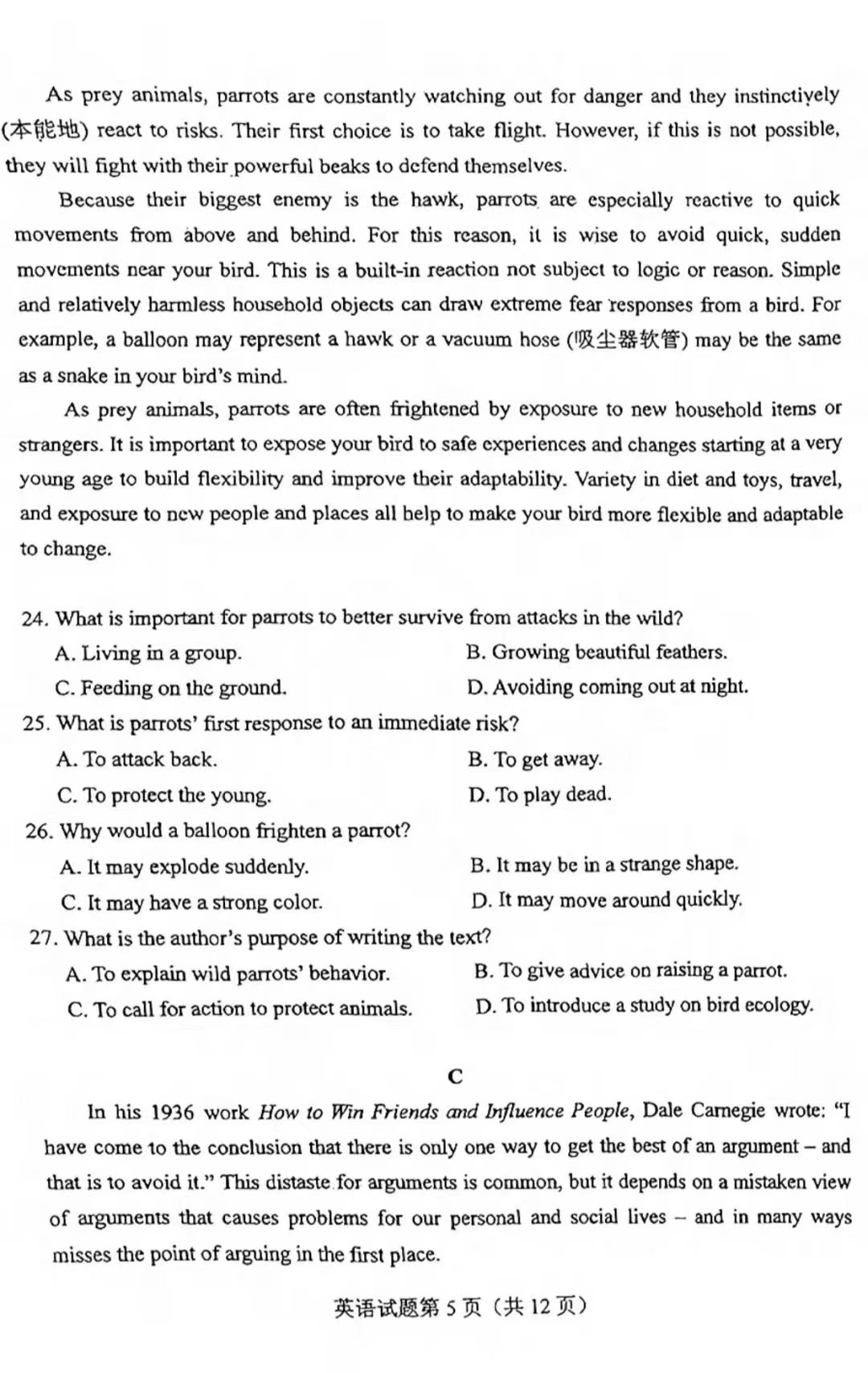 四、2024普通高校招生适应性演练英语考试试卷及答案