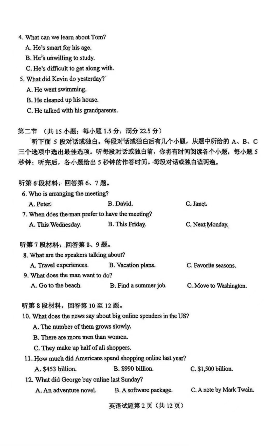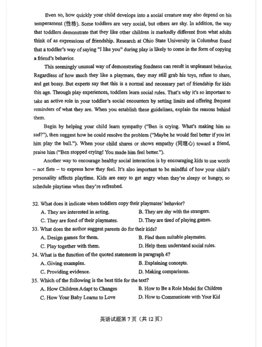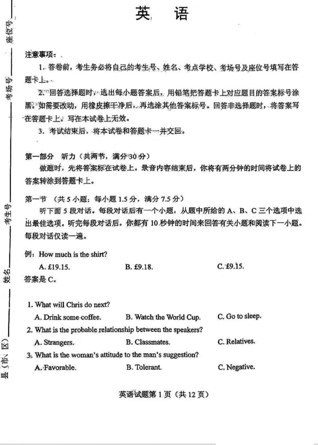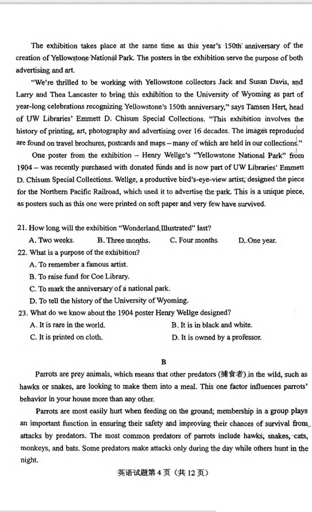 四、2024普通高校招生适应性演练英语考试试卷及答案