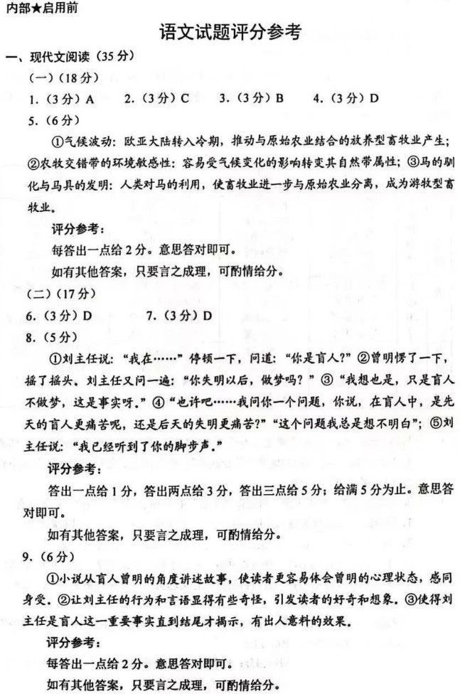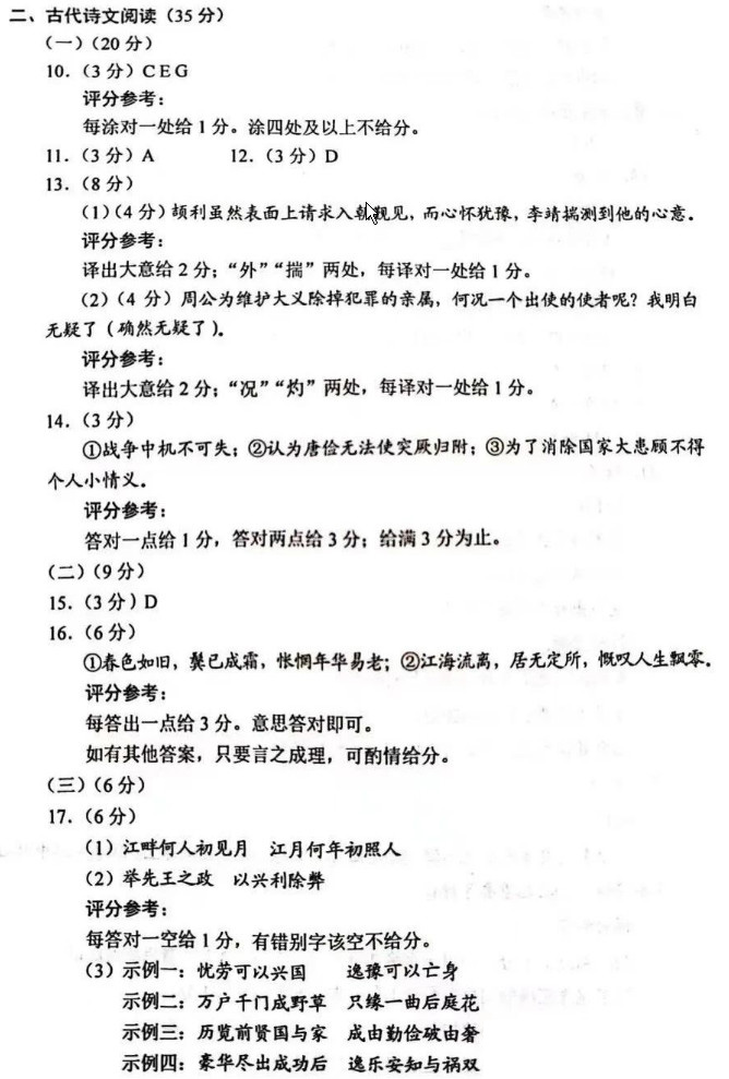 以下是2024九省联考语文试卷及答案解析(非标准答案,仅供参考):