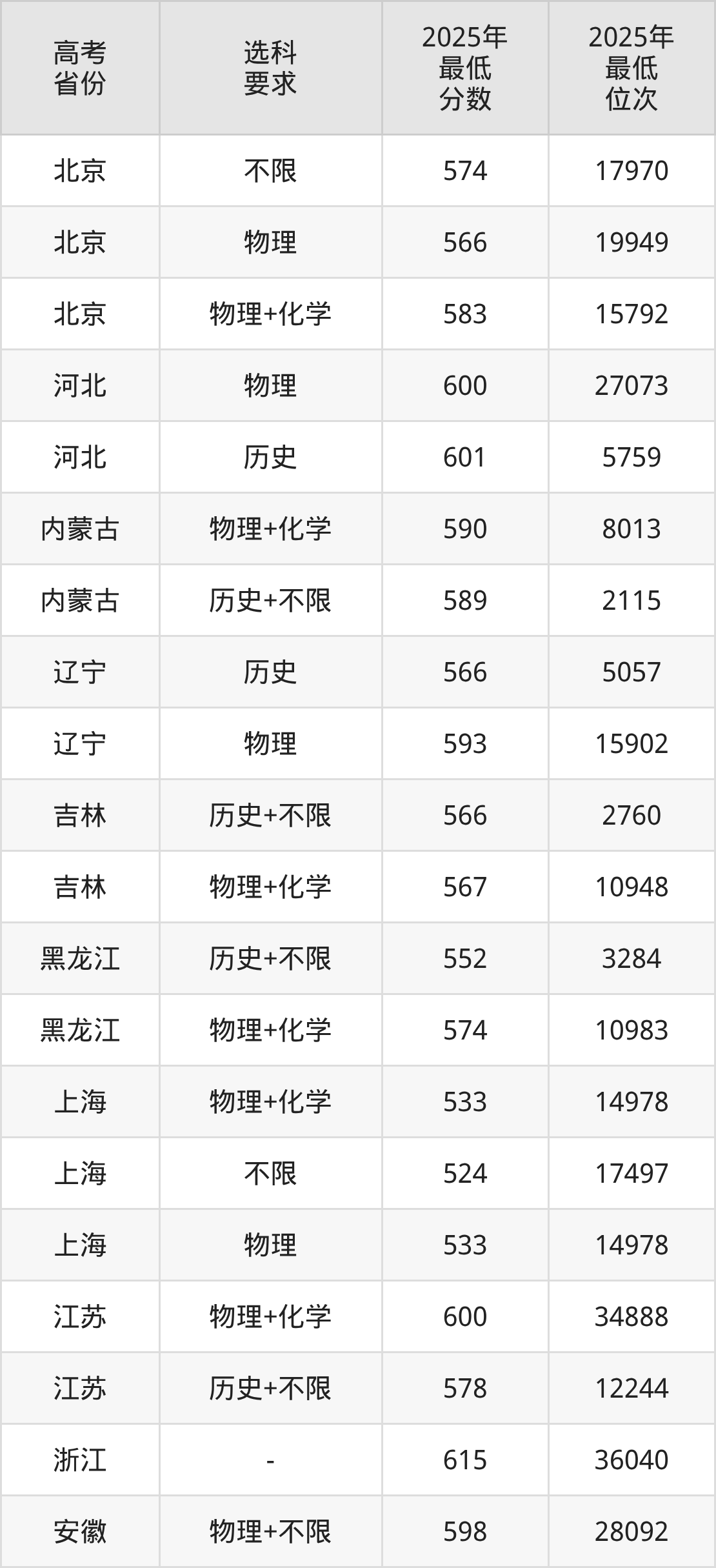 下方是上海理工大学2025年在上海市录取分数线比较高的3个专业,2026年高考生可以参考!