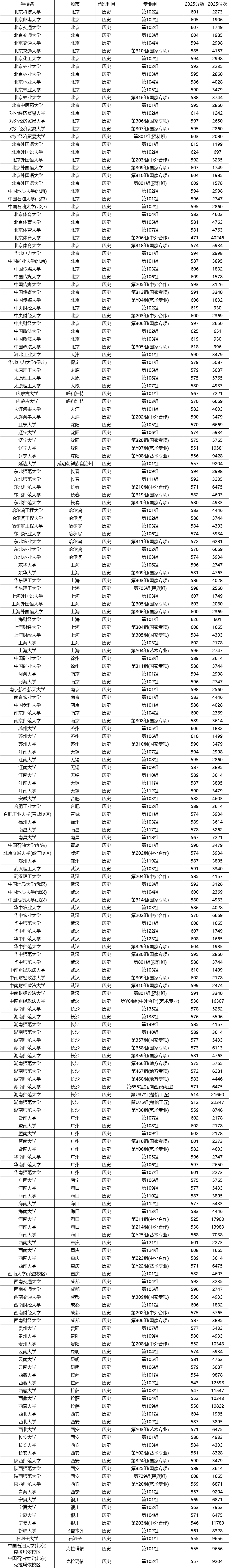 涵盖了中西部地区的主要211高校。如湖南师范大学普通组578-589分、暨南大学多个专业组602分、西南财经大学第101组606分。这部分院校实力不俗且性价比高,是历史类考生的重点考虑对象。