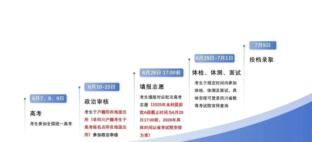 关键提示:整个流程中,政治考察是“入场券”,体检体测面试是“资格赛”,高考分数是“决胜局”,缺一不可。