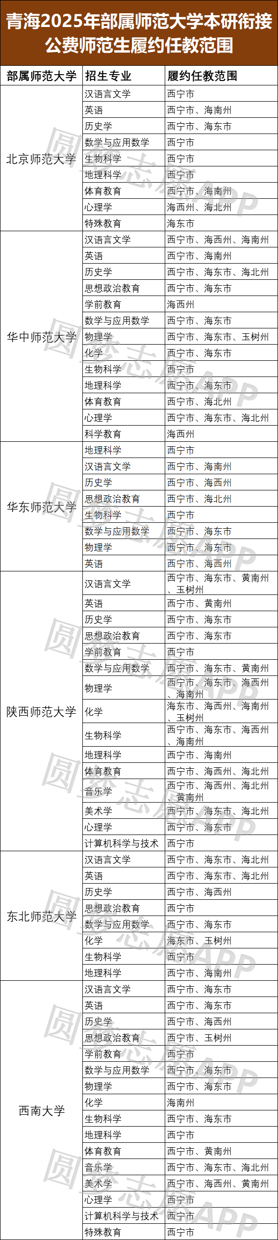 以下为2025年宁夏部属师范大学本研衔接公费师范生履约任教范围整理,2026届考生在选择院校和专业时可重点参考: