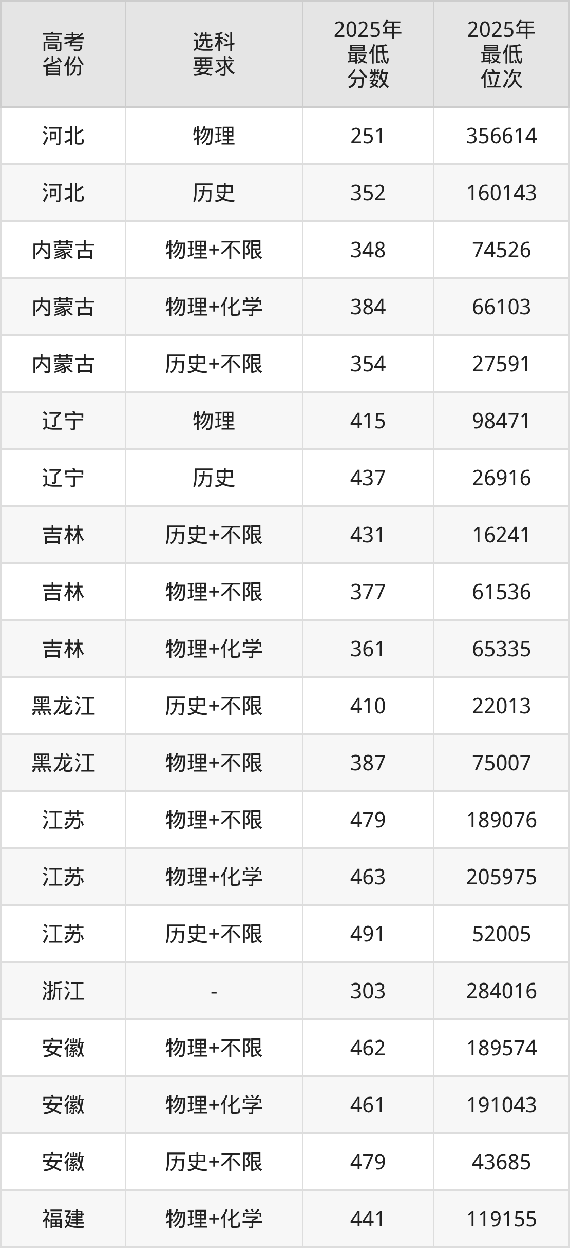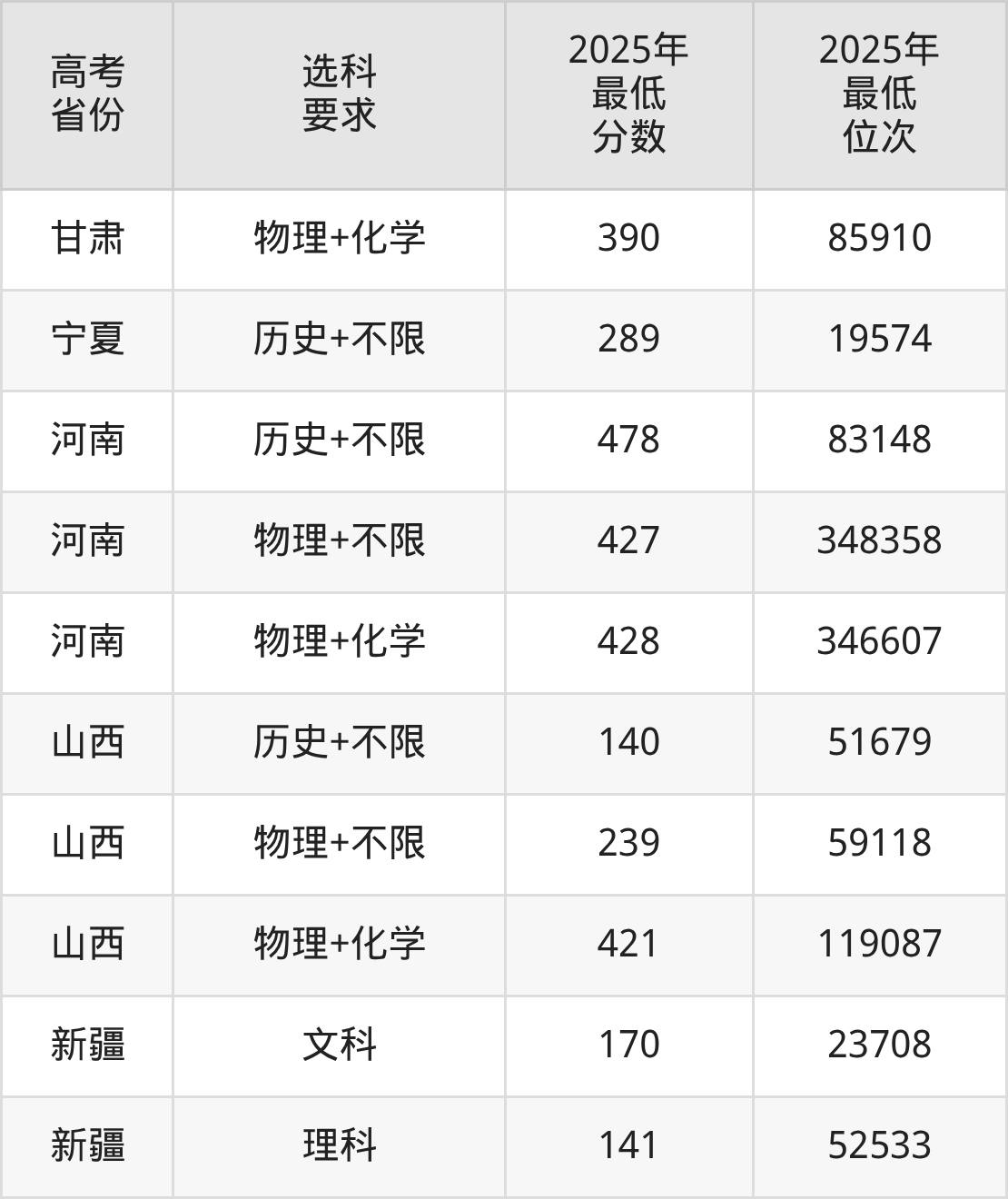 在2025年新疆高考理科招生时,公办本科收分最低的是兴安职业技术大学,最低分是148分、位次是52507位。再看陕西国际商贸学院,2025年在新疆理科的最低录取分数线是141分,最低位次是52533位。