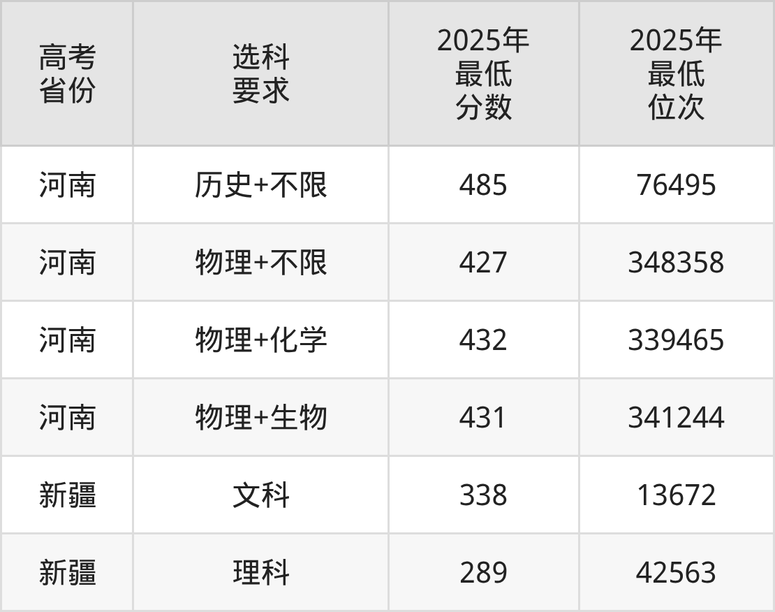 在2025年河南高考物理类招生时,公办本科收分最低的是福建商学院第801组(预科组),最低分是423分、位次是355229位。再看新乡工程学院,2025年在河南物理类的最低录取分数线是427分,最低位次是348358位。