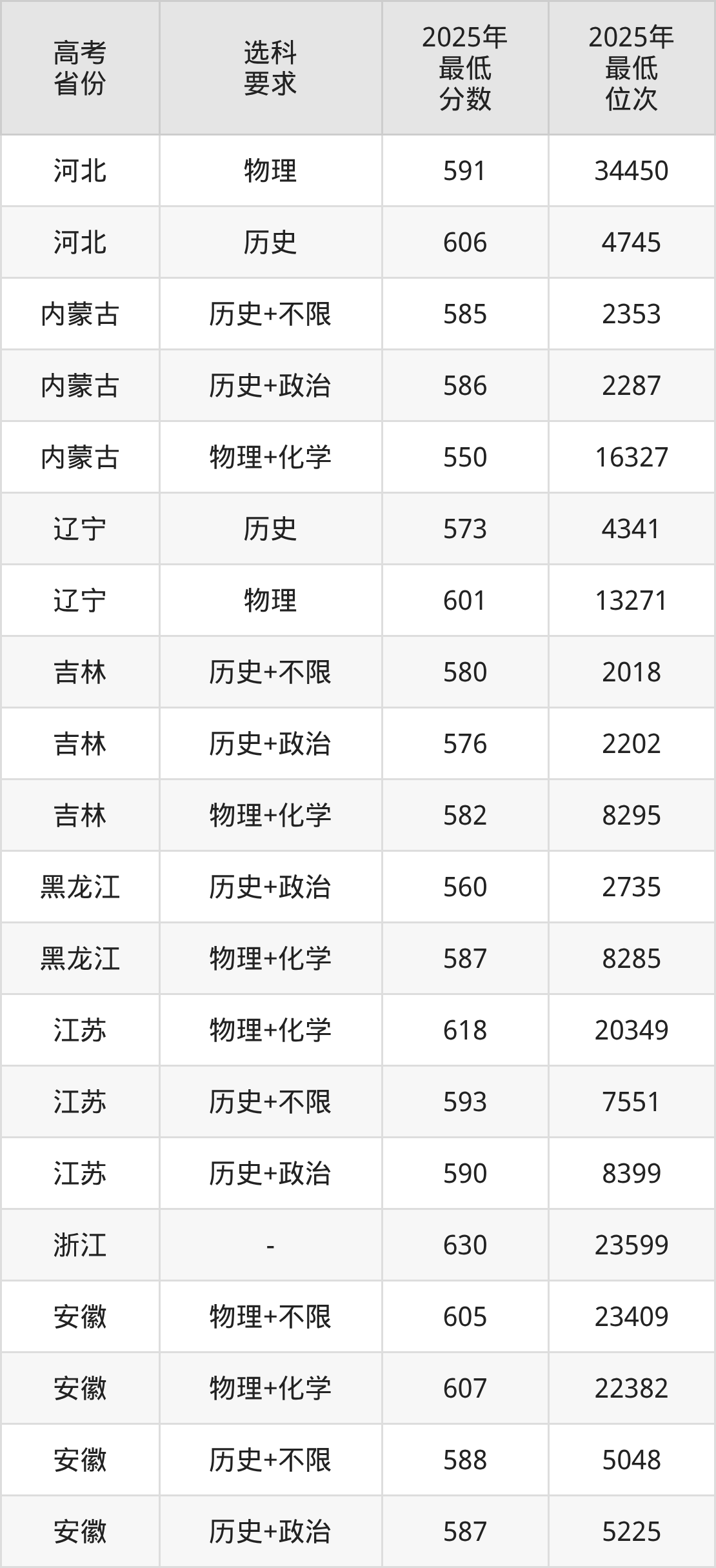 在2025年安徽高考物理类招生时,985收分最低的是大连理工大学(盘锦校区)003组(中外合作办学),最低分是586分、位次是36630位。再看合肥工业大学(宣城校区),2025年在安徽物理类的最低录取分数线是605分,最低位次是23409位。