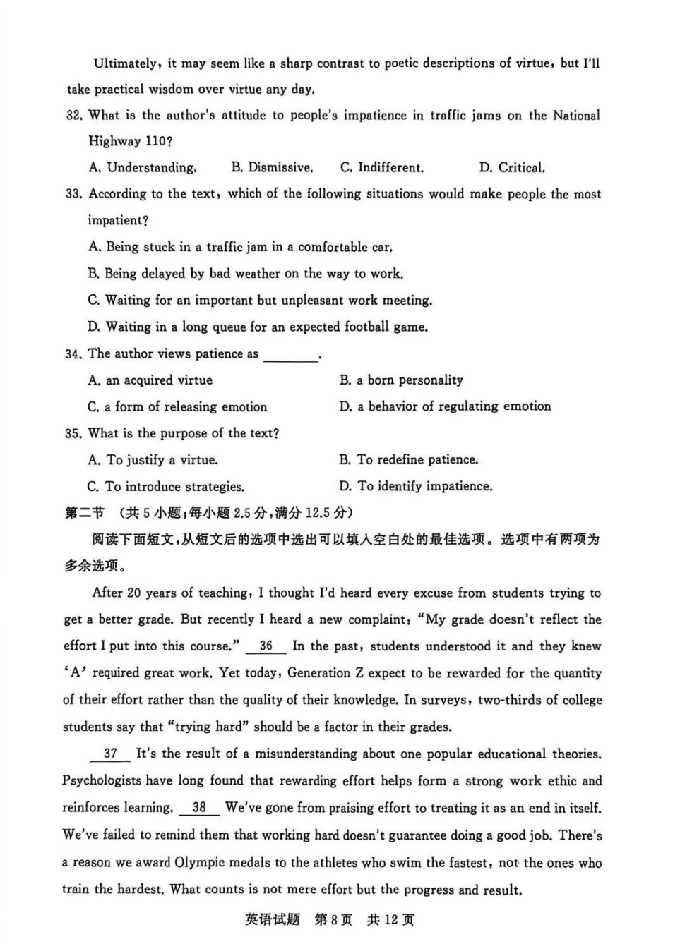 3.2026八省校联考(T8联考)外语答案
