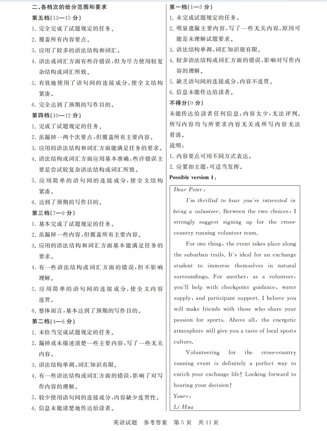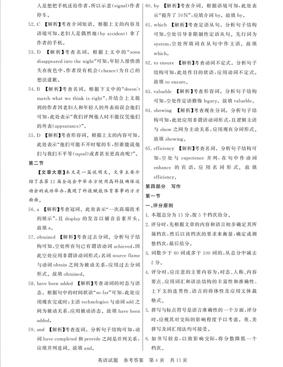 答案及试卷解析:
