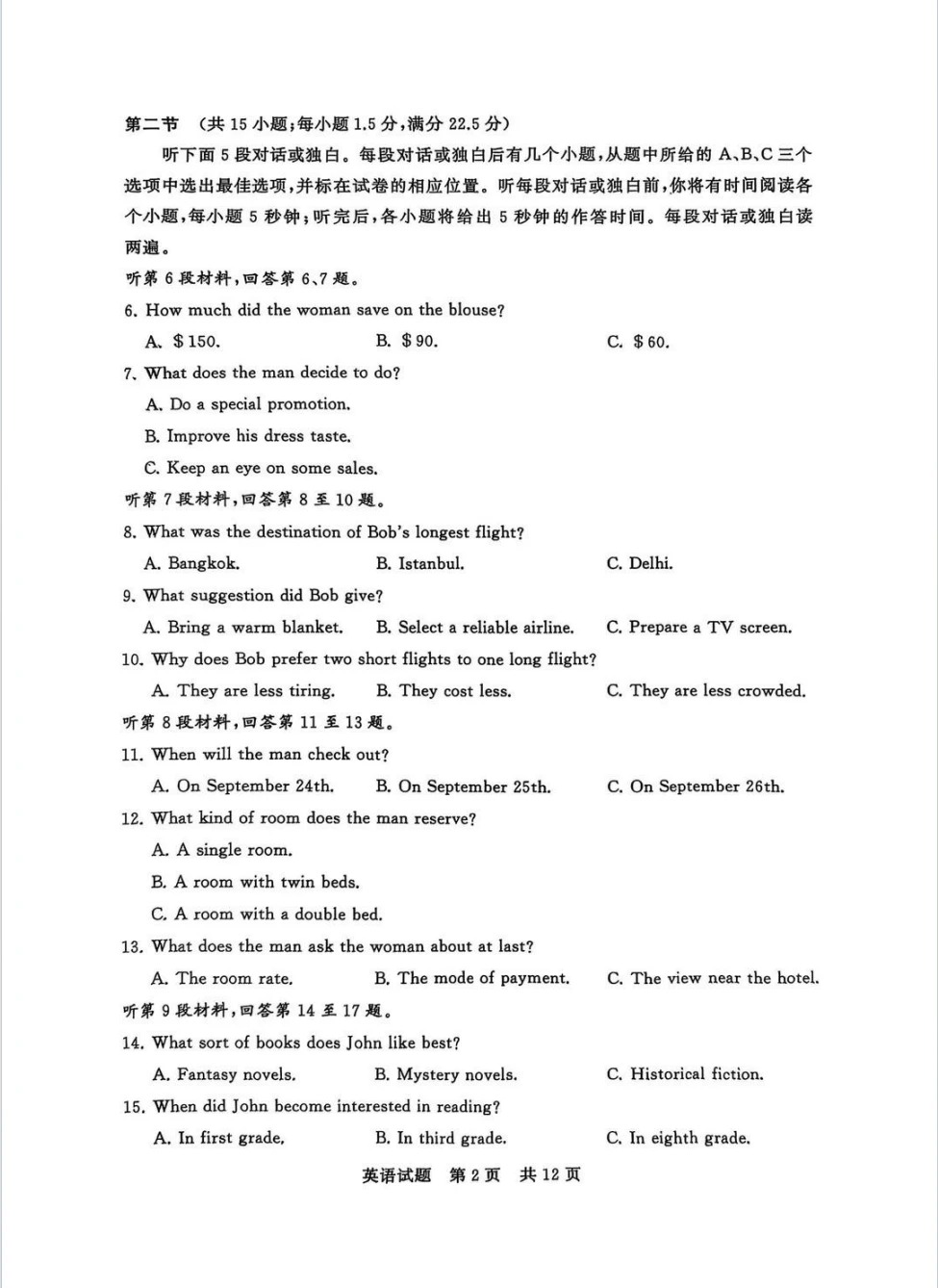 考试时间:12月25日上午8:00—10:00(含听力)