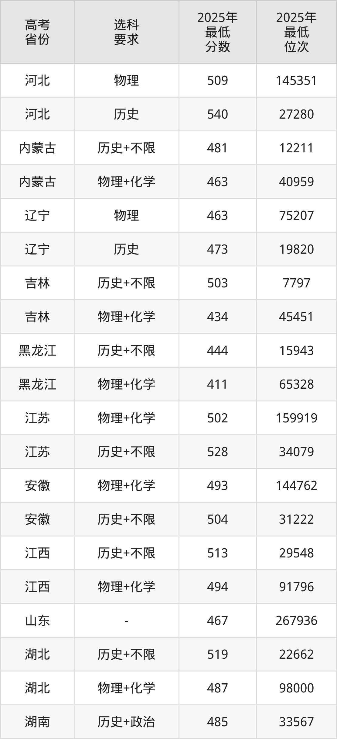 在2025年甘肃高考物理类招生时,211收分最低的是四川大学904专业组(国防基地预科),最低分是408分、位次是76099位。再看兰州文理学院,2025年在甘肃物理类的最低录取分数线是343分,最低位次是106003位。