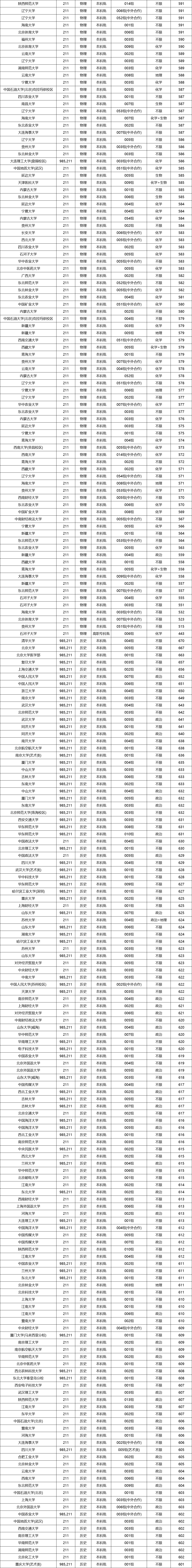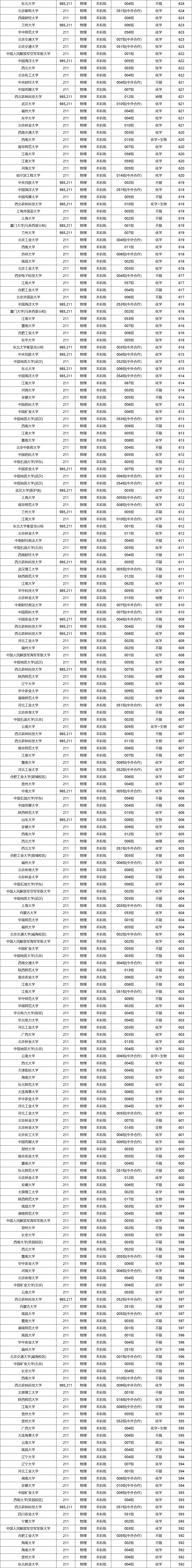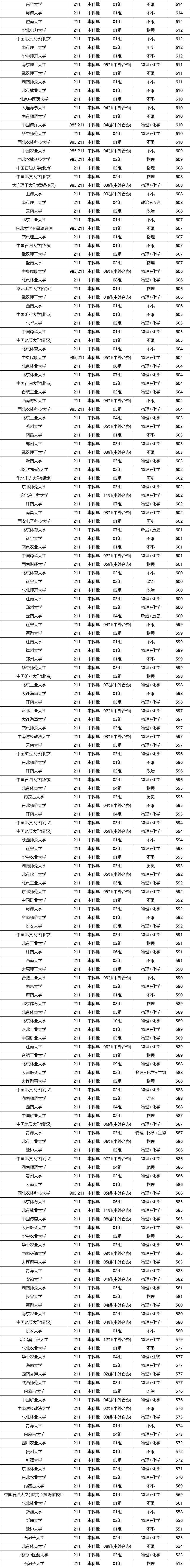 985、211大学在各省的分数线不同,但从上图整理的数据来看,985大学的最低分普遍超过了600分。当然也有985大学的收分低于600分,比如西北农林科技大学、中国农业大学等。