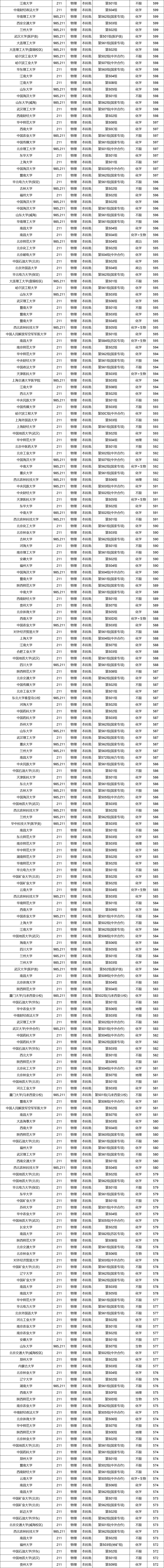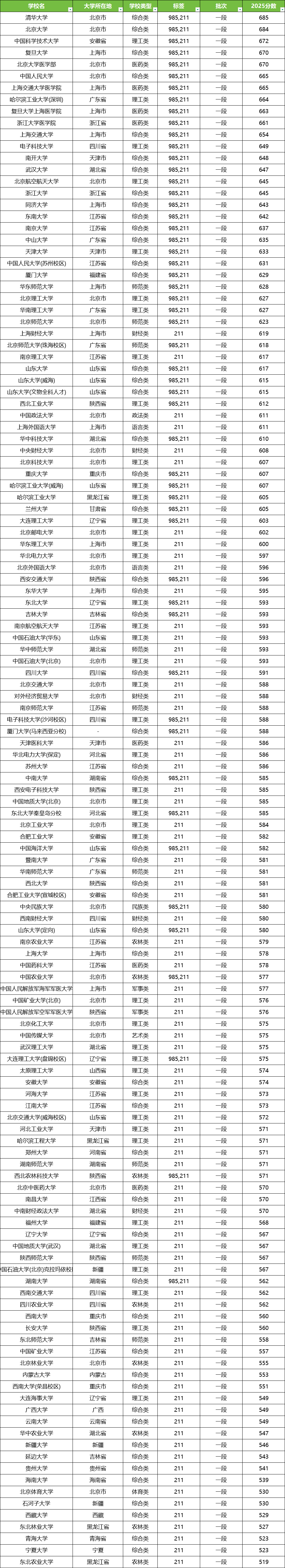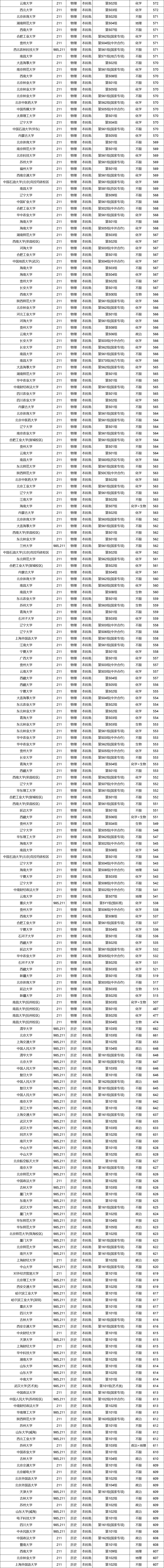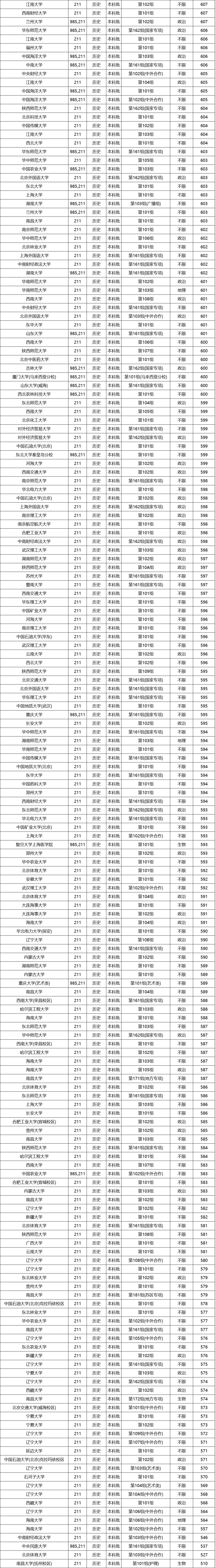 985、211大学在各省的分数线不同,但从上图整理的数据来看,985大学的最低分普遍超过了600分。当然也有985大学的收分低于600分,比如西北农林科技大学、中国农业大学等。