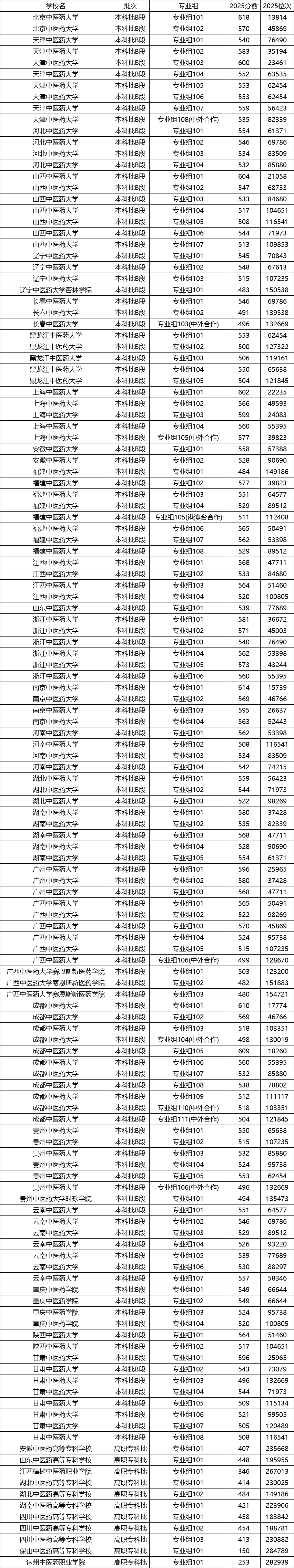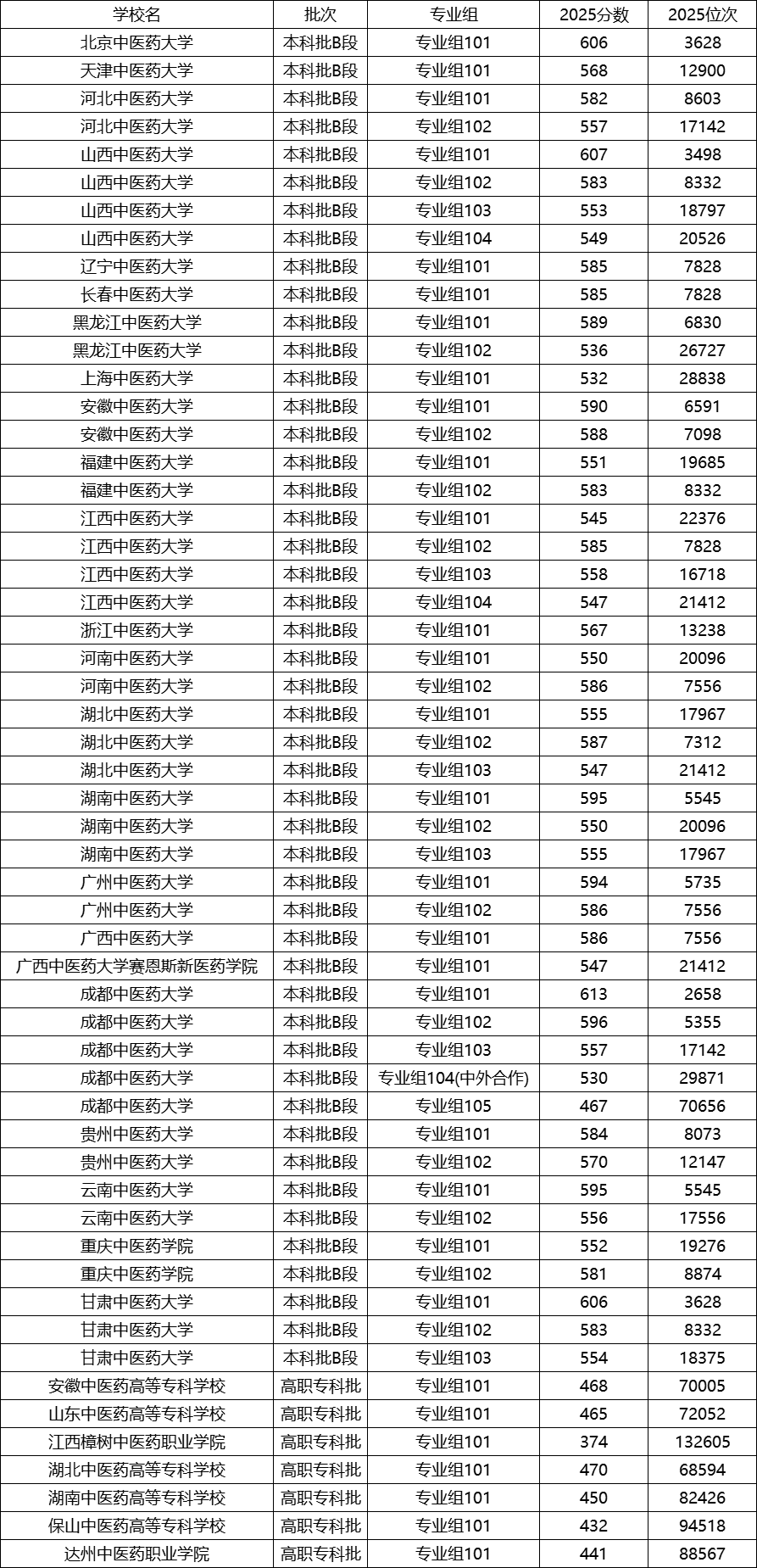 由于本文篇幅有限,我们以2025年四川省高考录取分数线为例,详细介绍了全国中医药大学的录取分数线情况,供2026届考生和家长在志愿填报时参考和查阅。