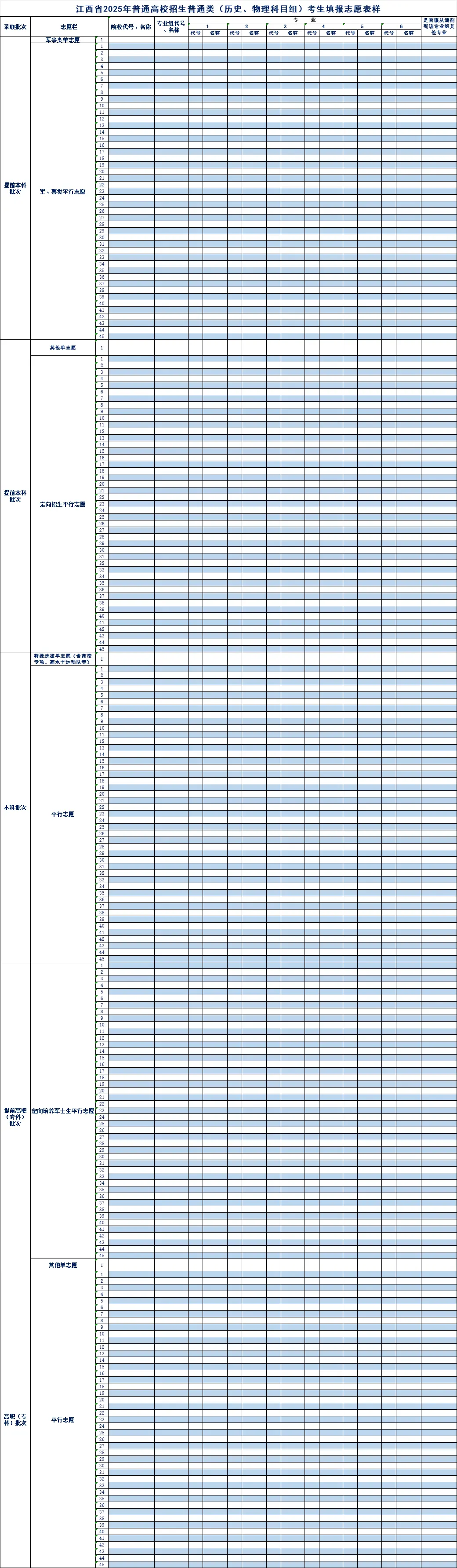江西高考志愿填报表电子版(志愿样表)