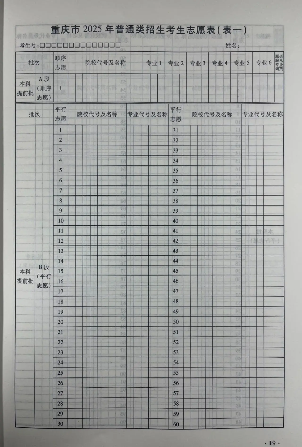 重庆高考志愿填报表电子版(志愿样表)