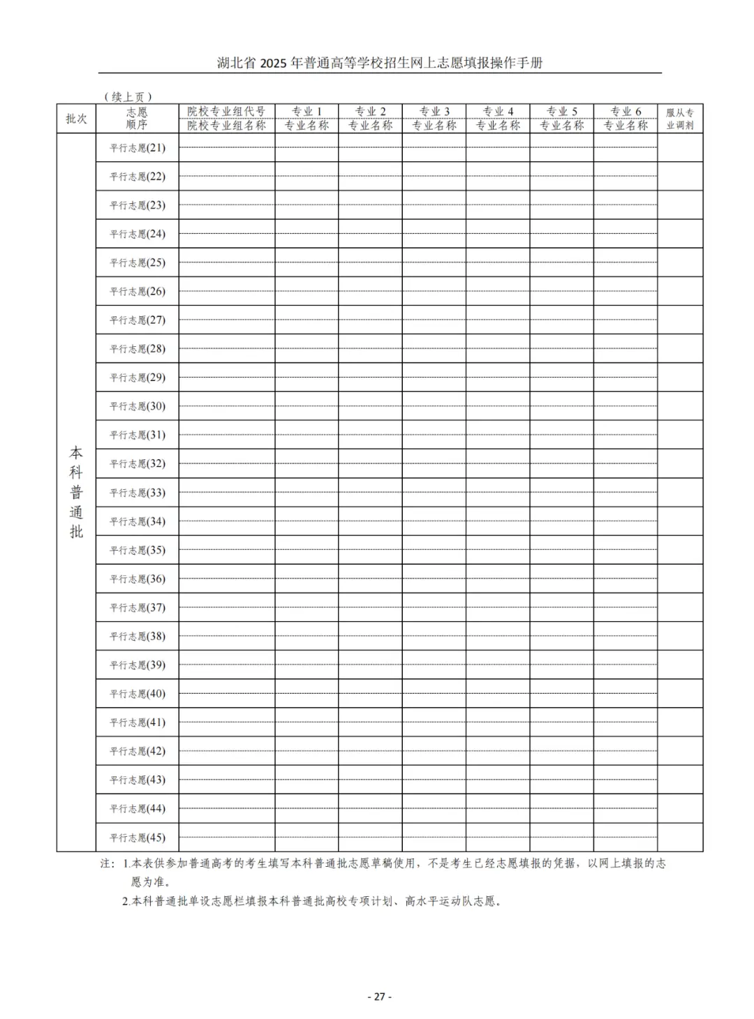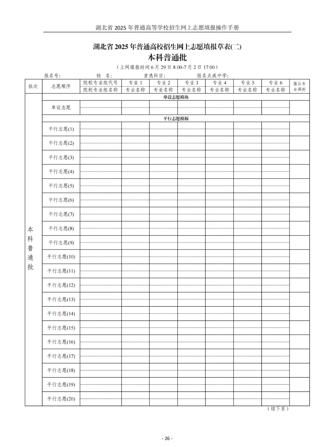 湖北高考志愿填报表电子版(志愿样表)