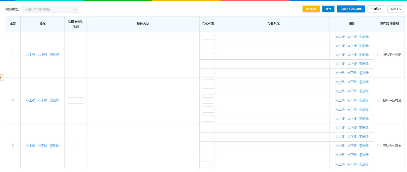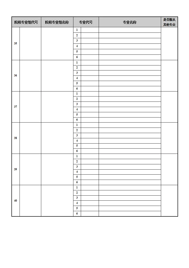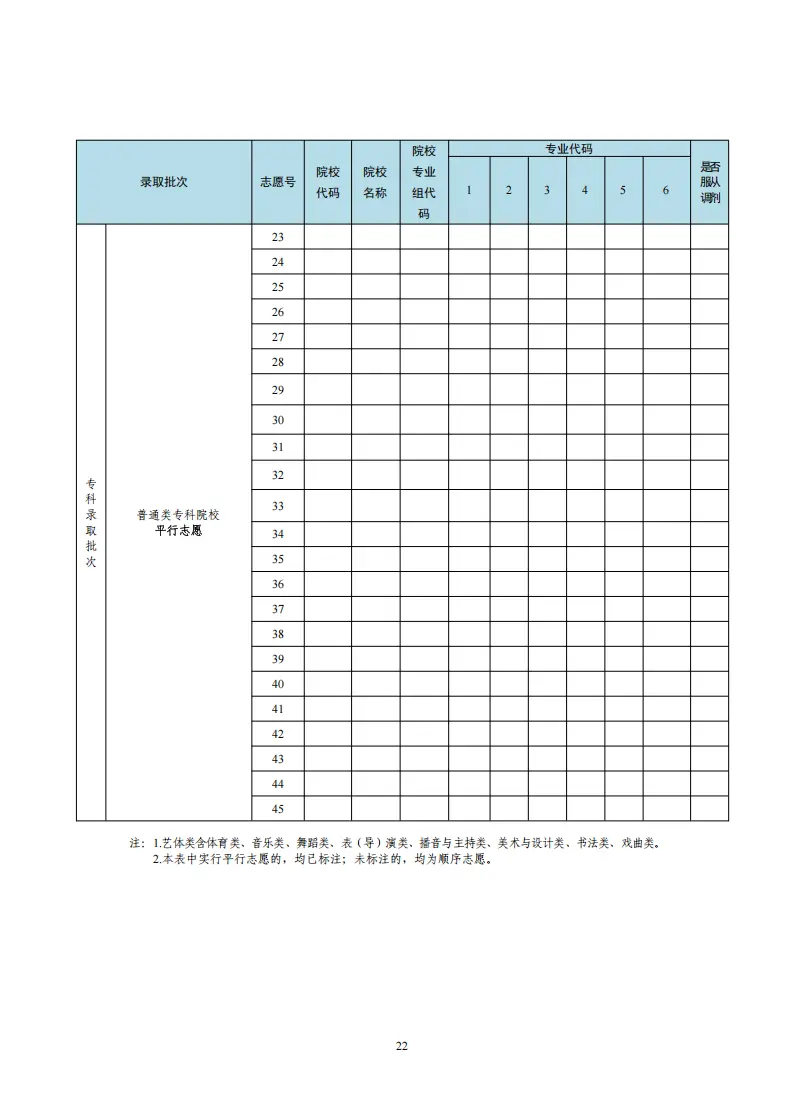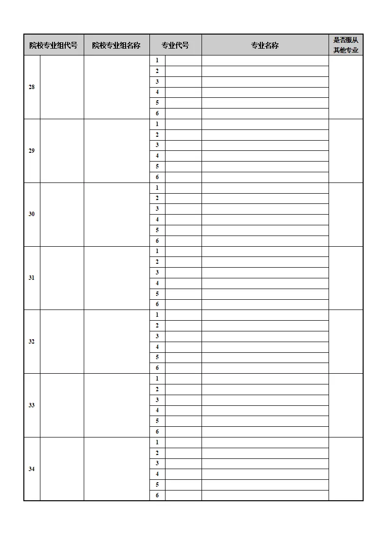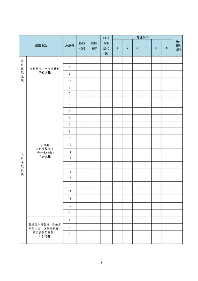 每一所高校和每一个专业(或专业组)都有对应的代码。志愿表中通常包含:
