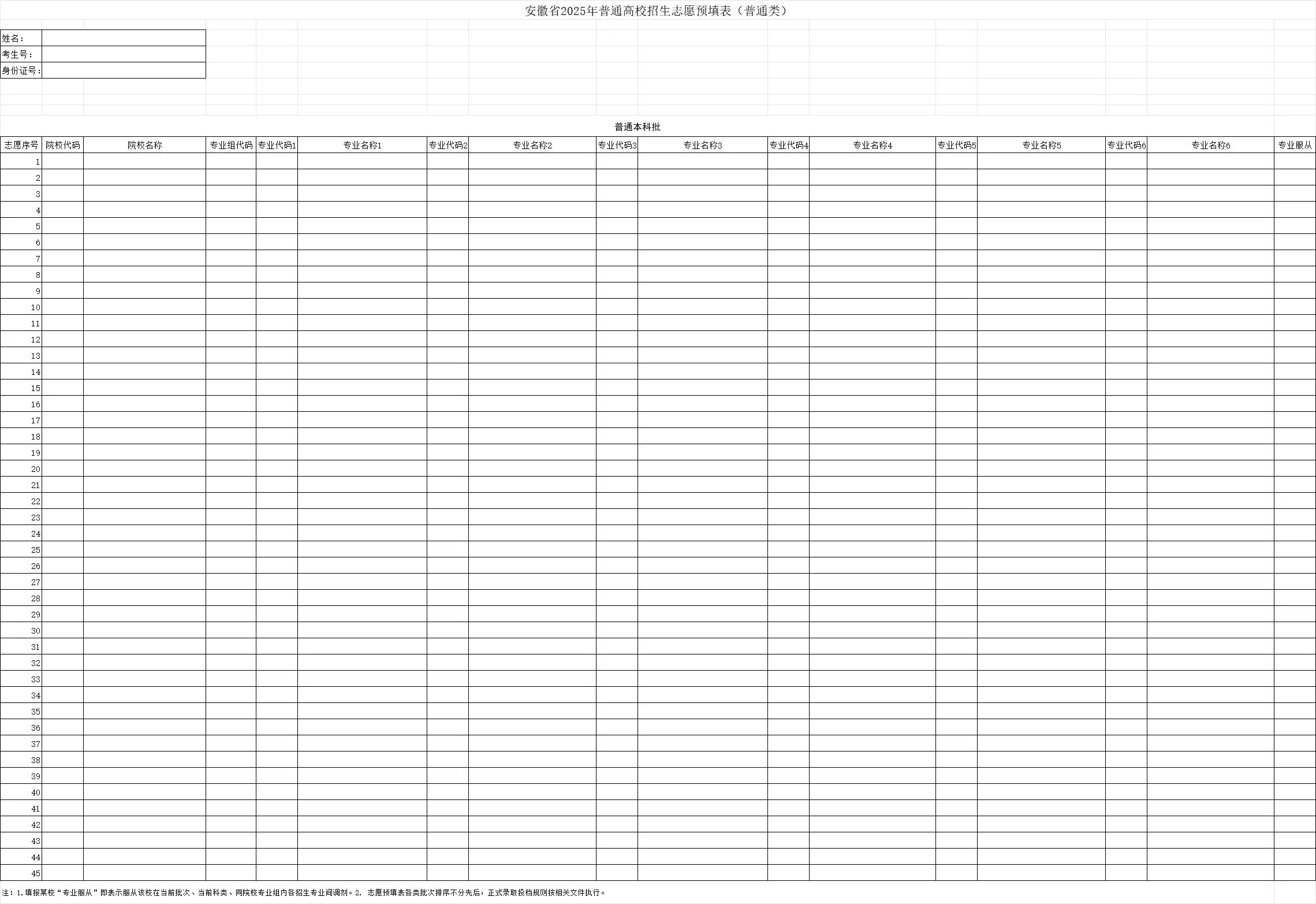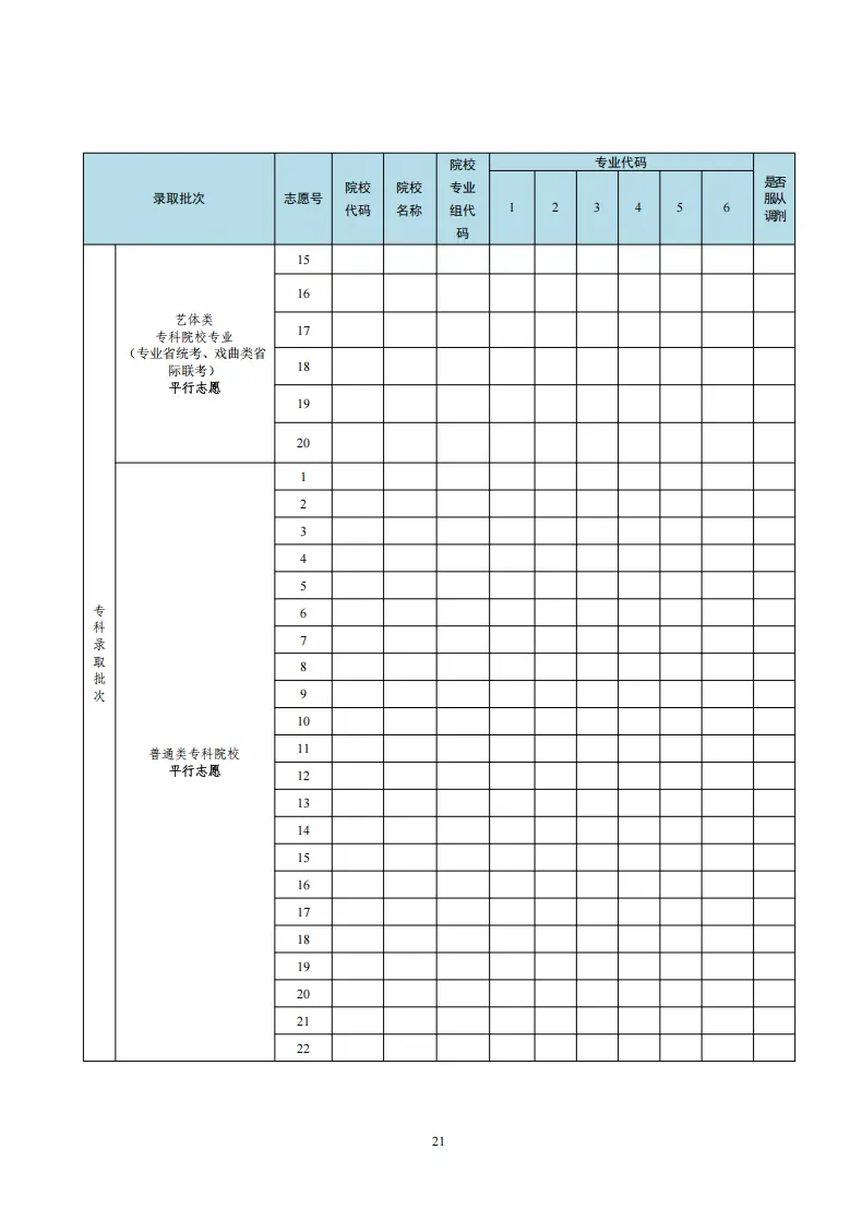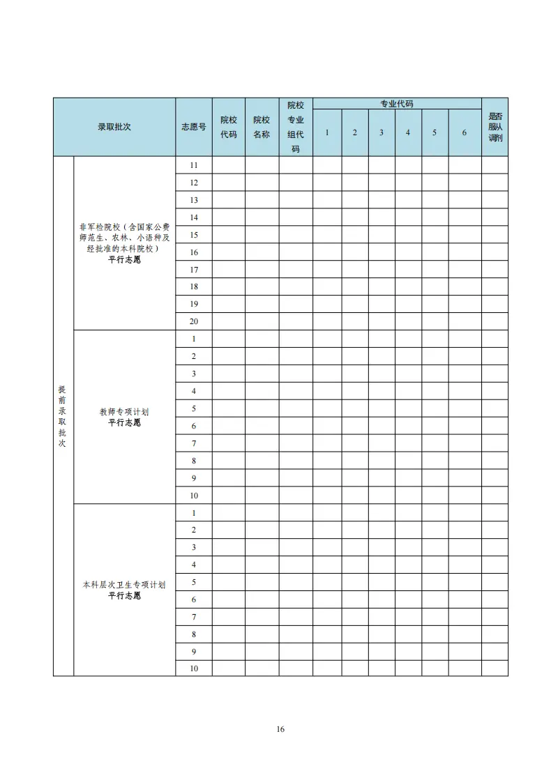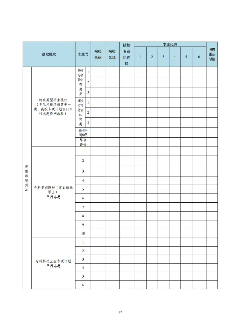 安徽高考志愿填报表电子版(志愿样表)