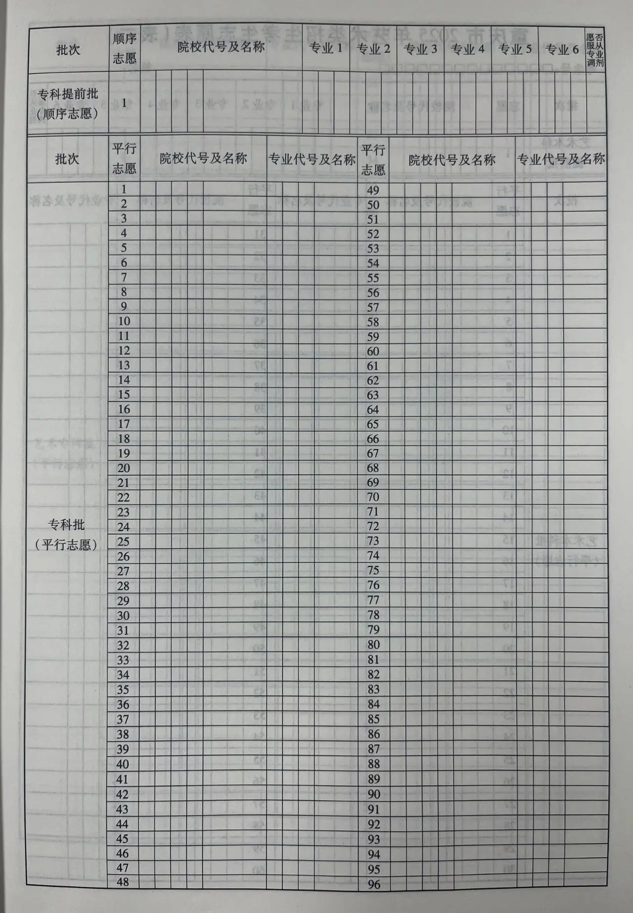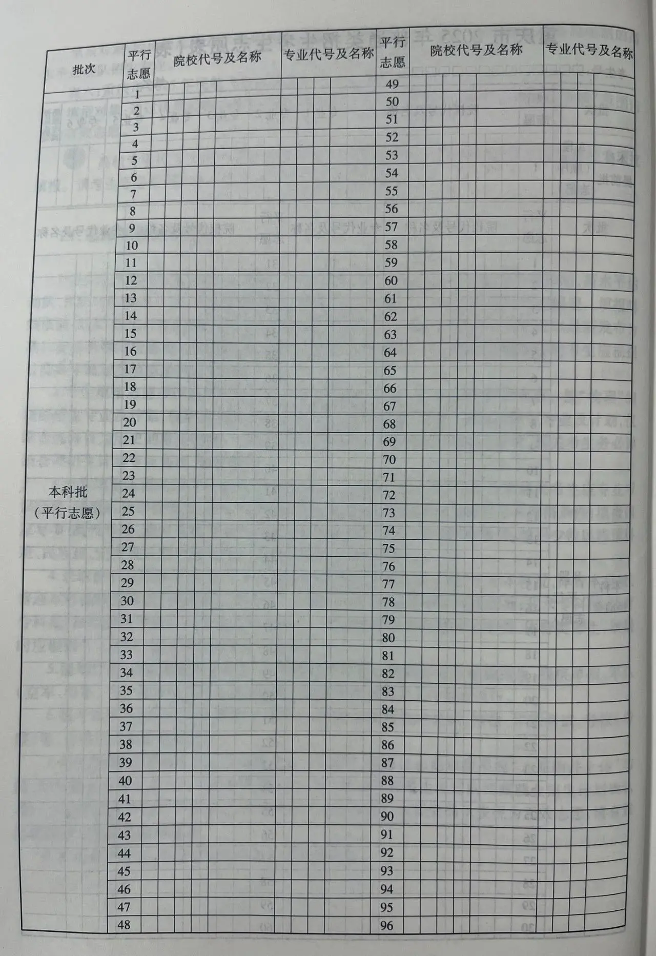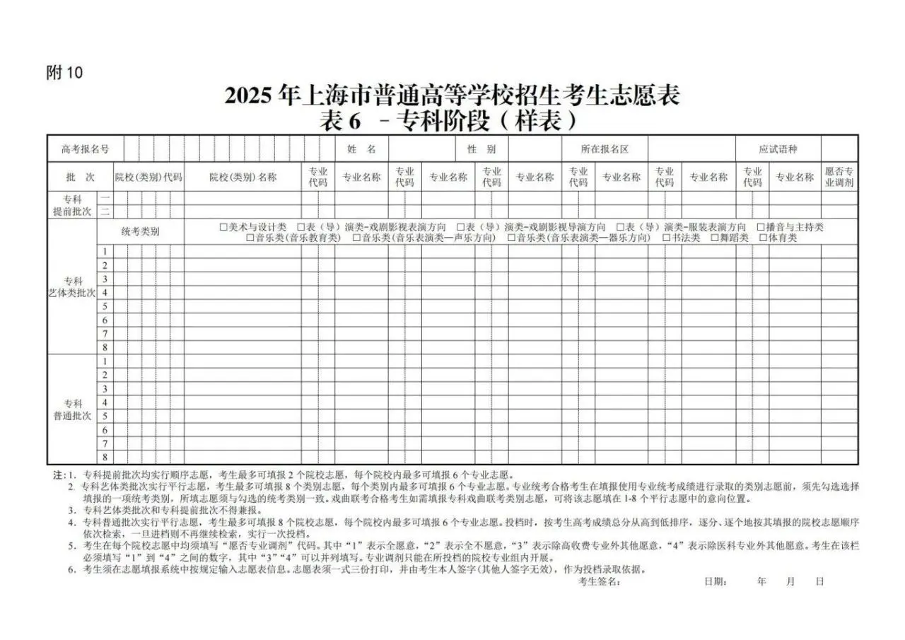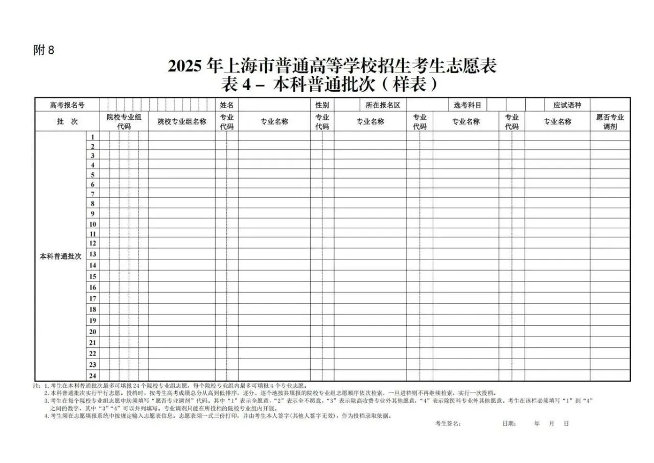 上海高考志愿填报表电子版(志愿样表)