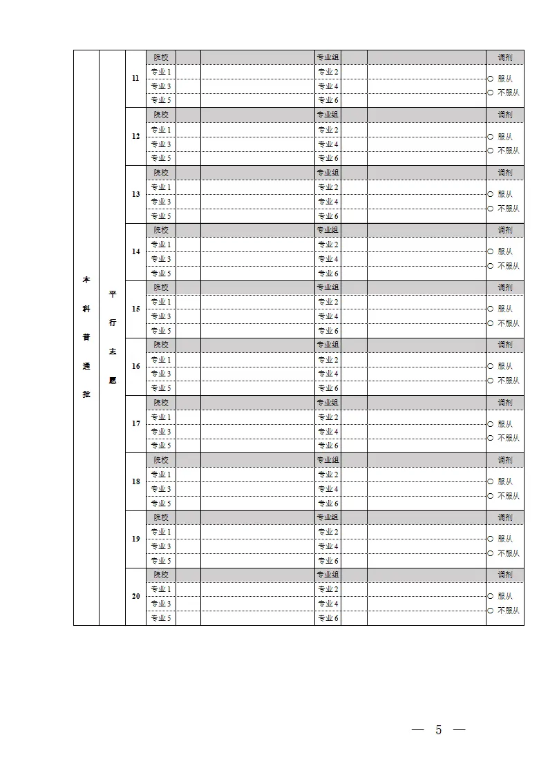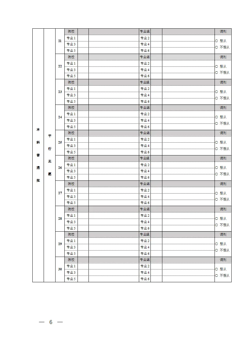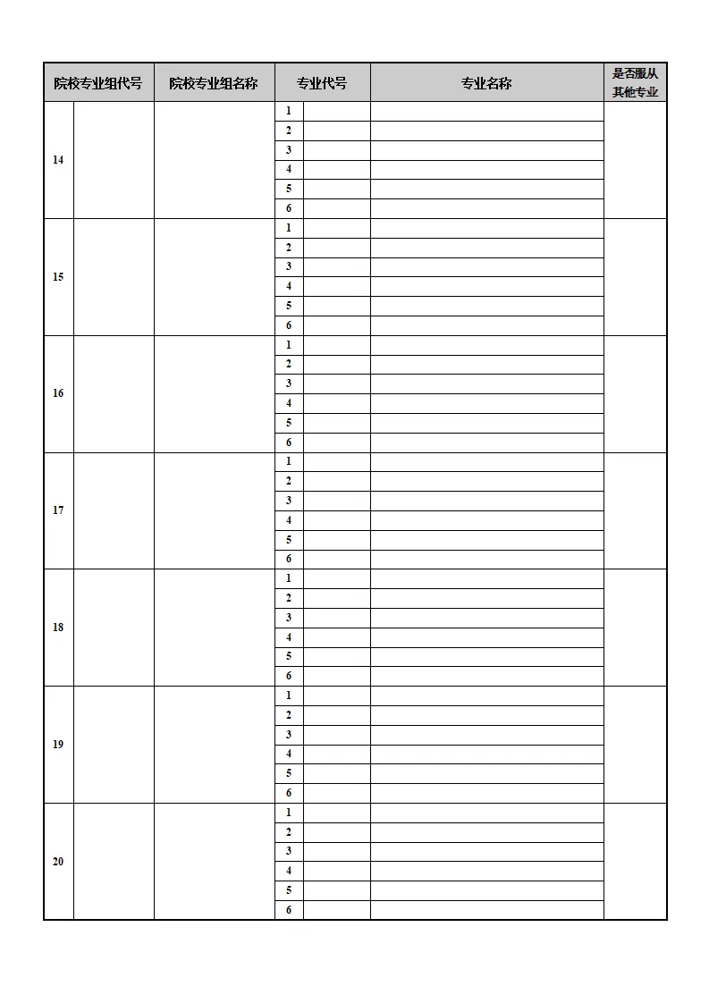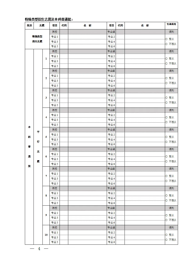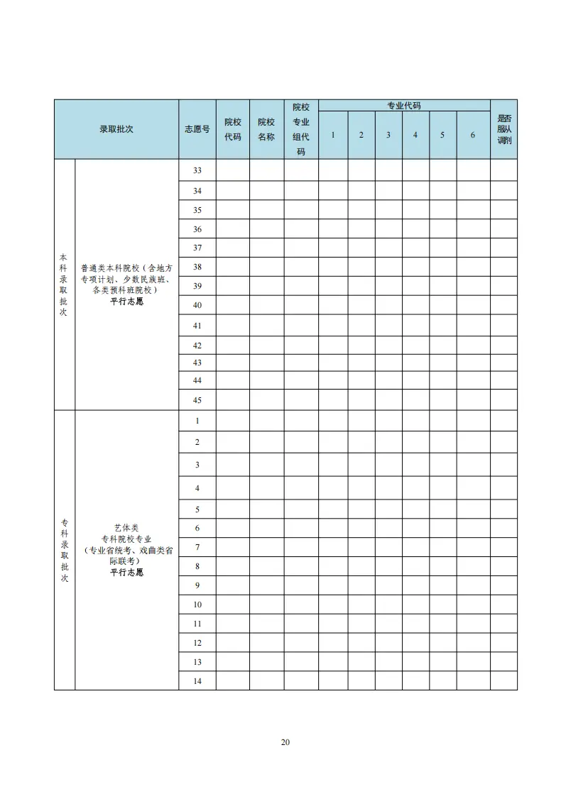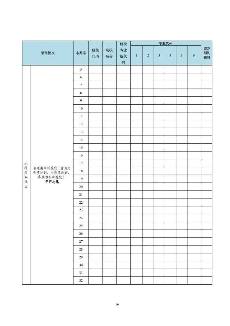 河北高考志愿填报表电子版(志愿样表)
