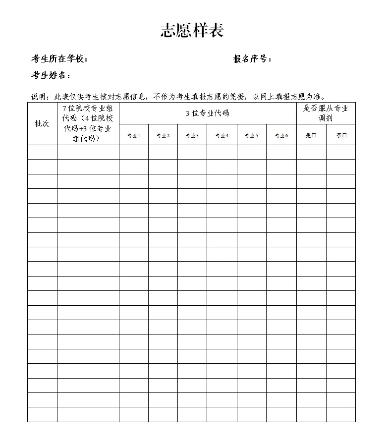 二、2026年全国高考志愿填报表电子版(志愿样表)