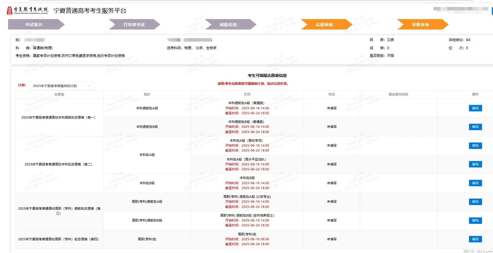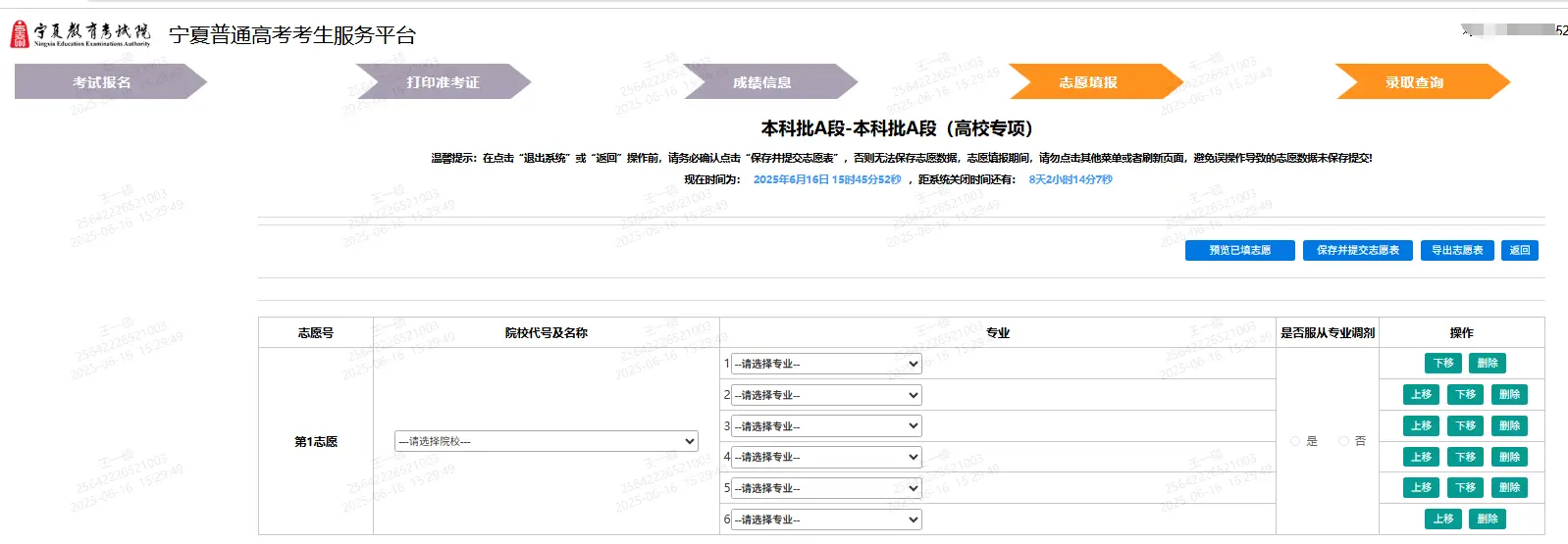 宁夏高考志愿填报表电子版(志愿样表)