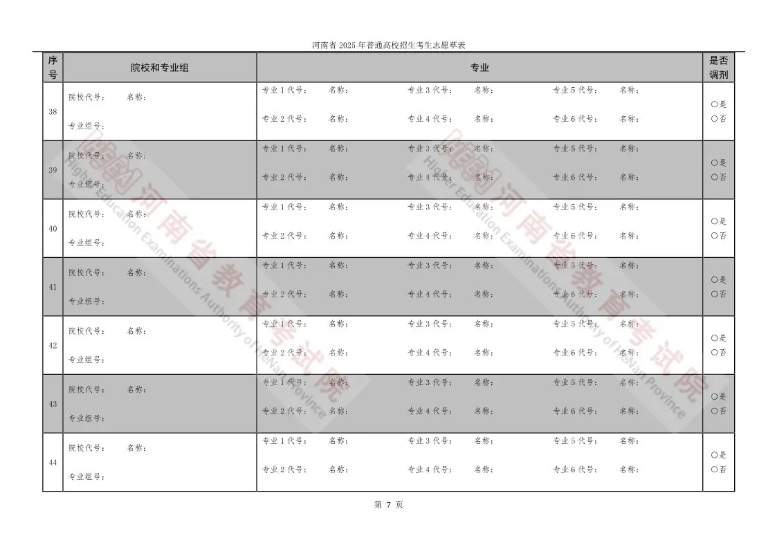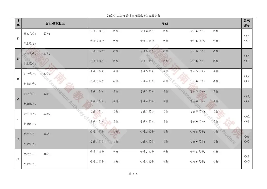 河南高考志愿填报表电子版(志愿样表)