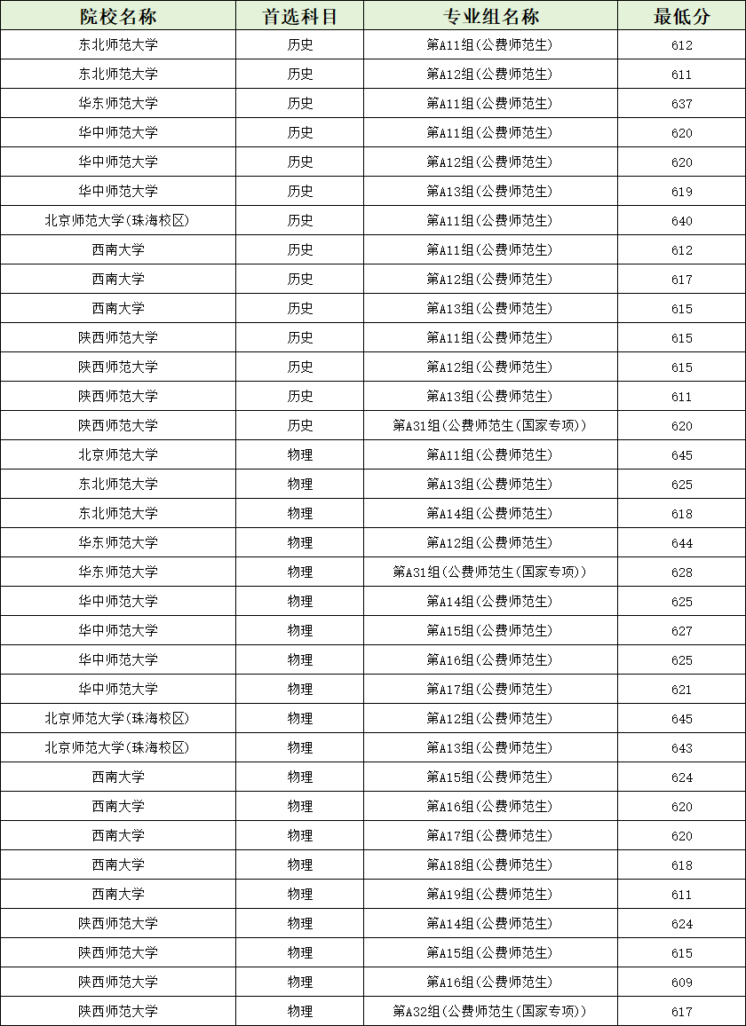 | 陕西师范大学 | 历史 | 002专业组 | 627 |